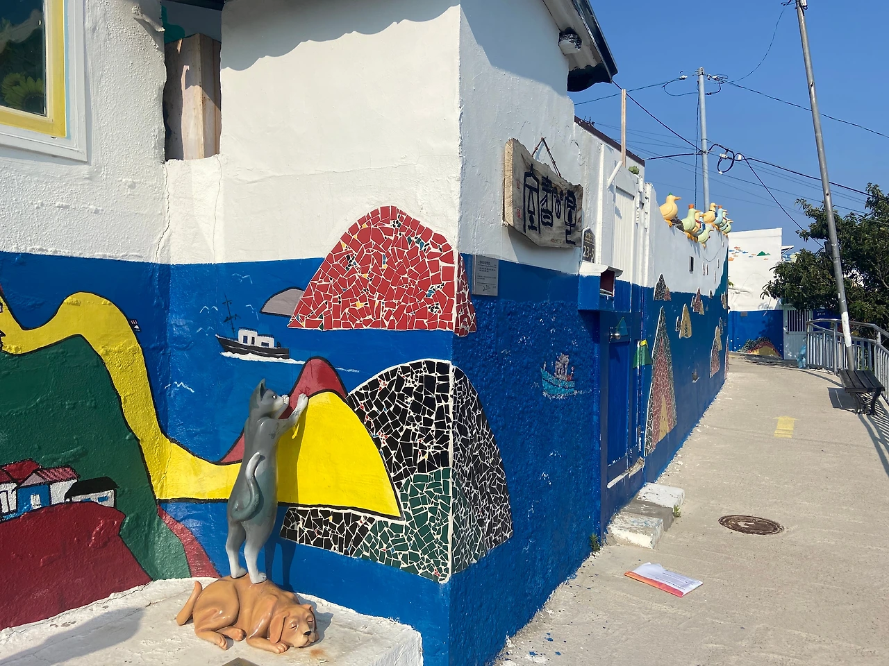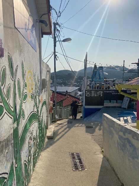 동피랑 벽화마을로 갔다. 예전 단어로 하면 '달동네'에 가까운 곳이다. 새로운 시대를 맞이해 리브랜딩했다. 다양한 벽화와 아기자기한 카페와 선물가게 등으로 구경거리가 많다. 좁은 골목을 이리저리 돌며 구경하면 시간가는 줄 모른다. (관광객들 때문에 주민들이 고통을 겪는 듯 했다. 아무래도 시끌시끌한 만큼 조용히 휴식을 취하기는 어렵겠지.) 전망대(?)까지 올라가서 먼 바다를 구경하고 다시 내려왔다.