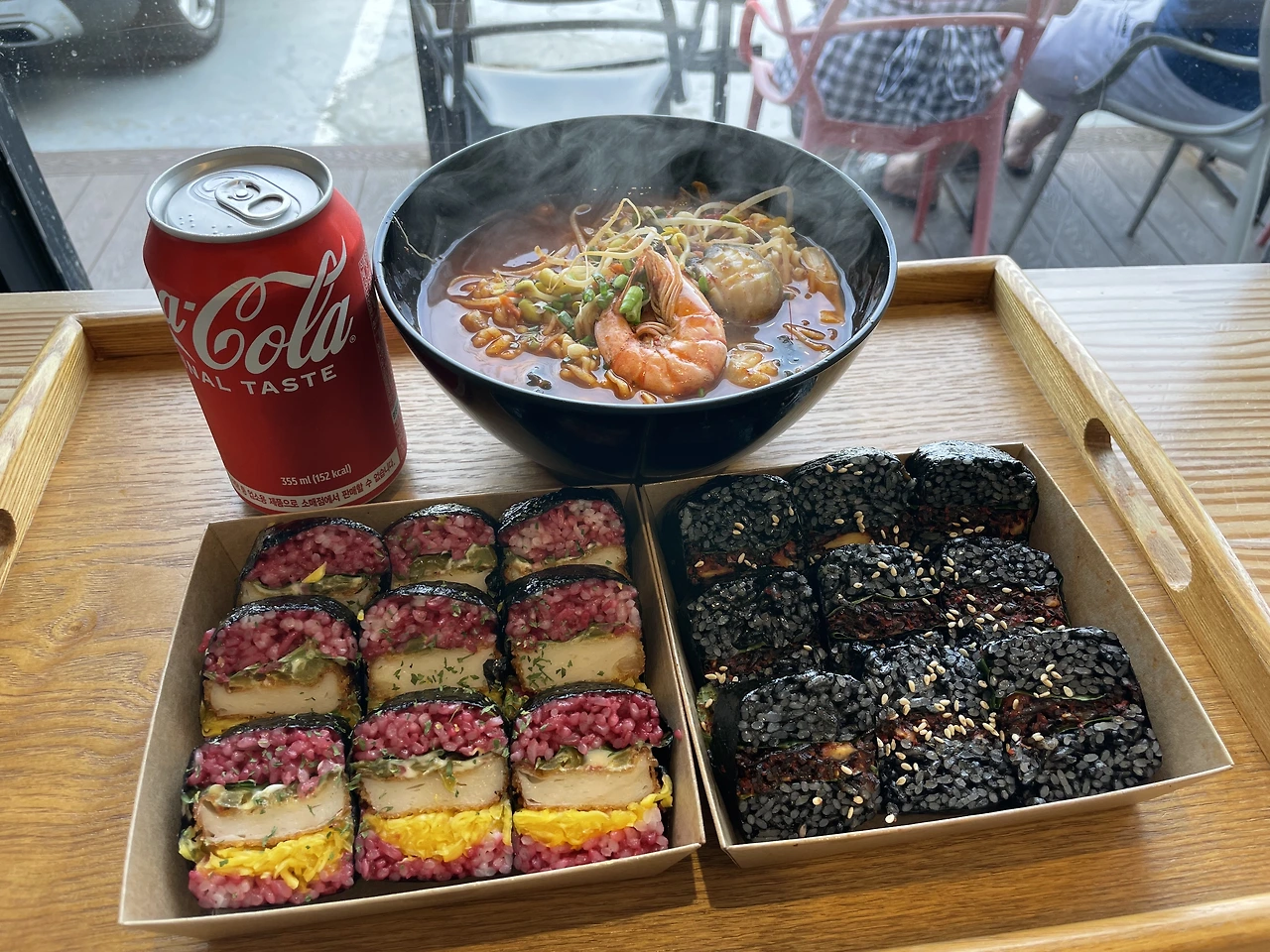 독특하지만 맛있다. 이걸 김밥이라고 불러도 되나 싶다. 하지만 네이밍은 주인의 고유권한이니 이건 김밥이 맞다. 라면은 갖가지 해산물로 바다내음이 진하다. 웨이팅이 좀 있었지만, 기다린 보람이 있다. 프렌차이즈보다는 이런 다양한 가게들이 많아졌으면 좋겠다. 그나저나 바깥 좌석에서 드시는 분들은 자동차 매연을 그대로 흡입하시던데, 웬만하면 안에서 드시는 걸 권합니다.