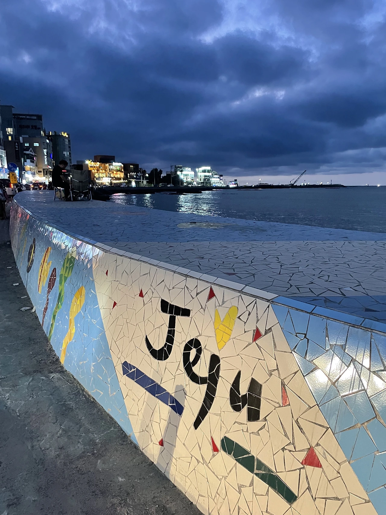 하나둘씩 건물에 불이 켜지고, 바다는 조용히 파도 소리만 울린다.