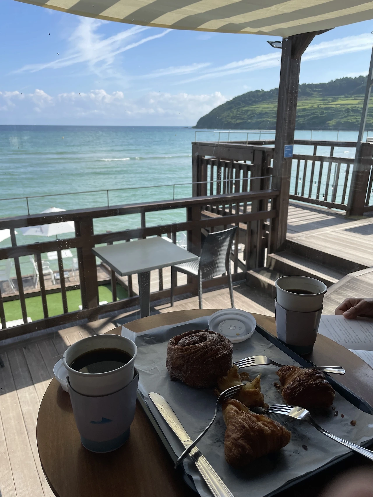 크로아상과 시나몬롤을 커피와 먹었다. 베이커리를 직접 한다. 갓 구운 따끈한 빵이 커피와 잘 어울린다.