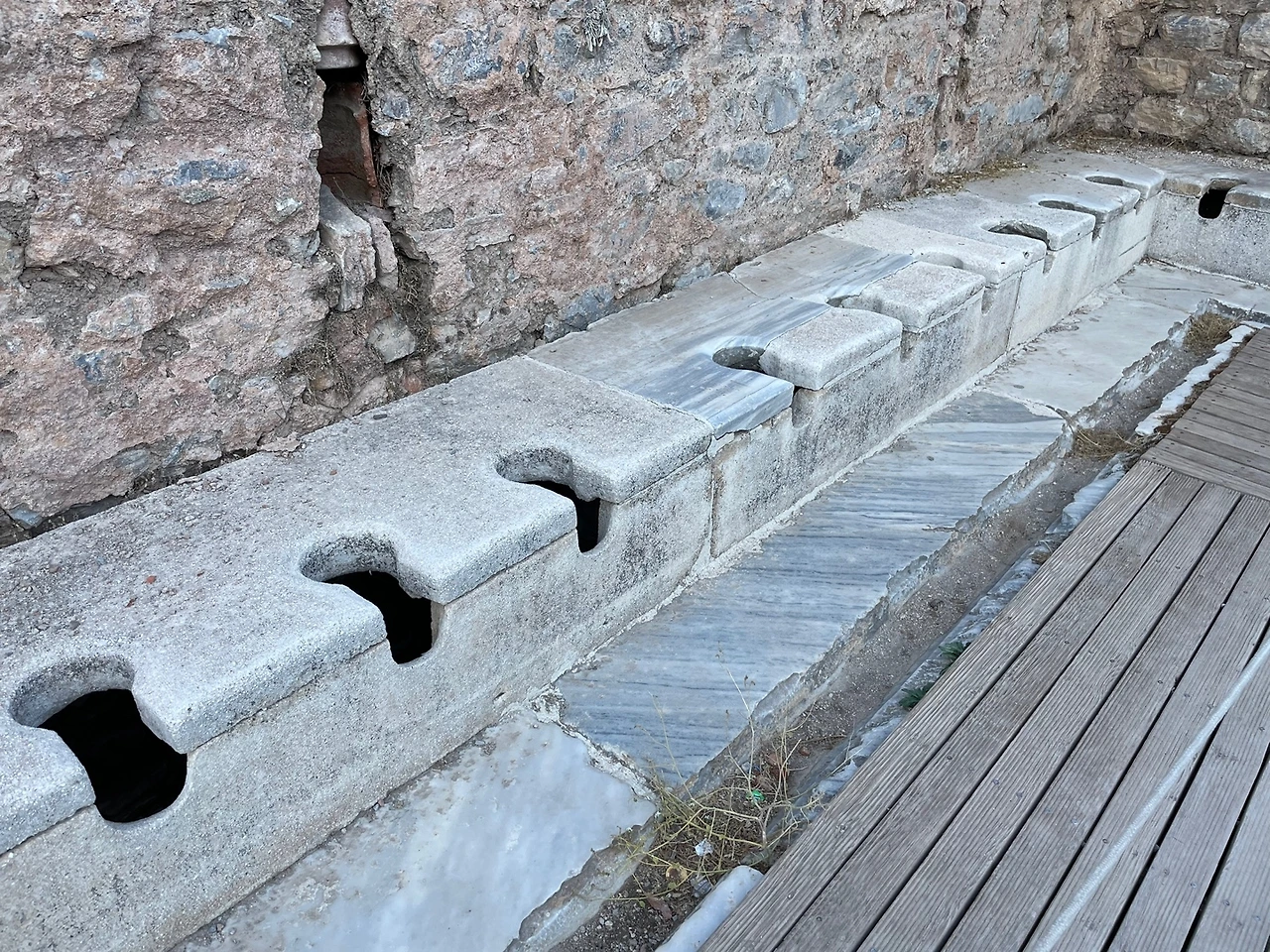 귀족이 앉을 때 차갑지 말라고 노예가 먼저 와서 앉아 있었다고 한다. 소리나면 민망하니까 앞에 분수를 만들어 소음을 발생시켰다.