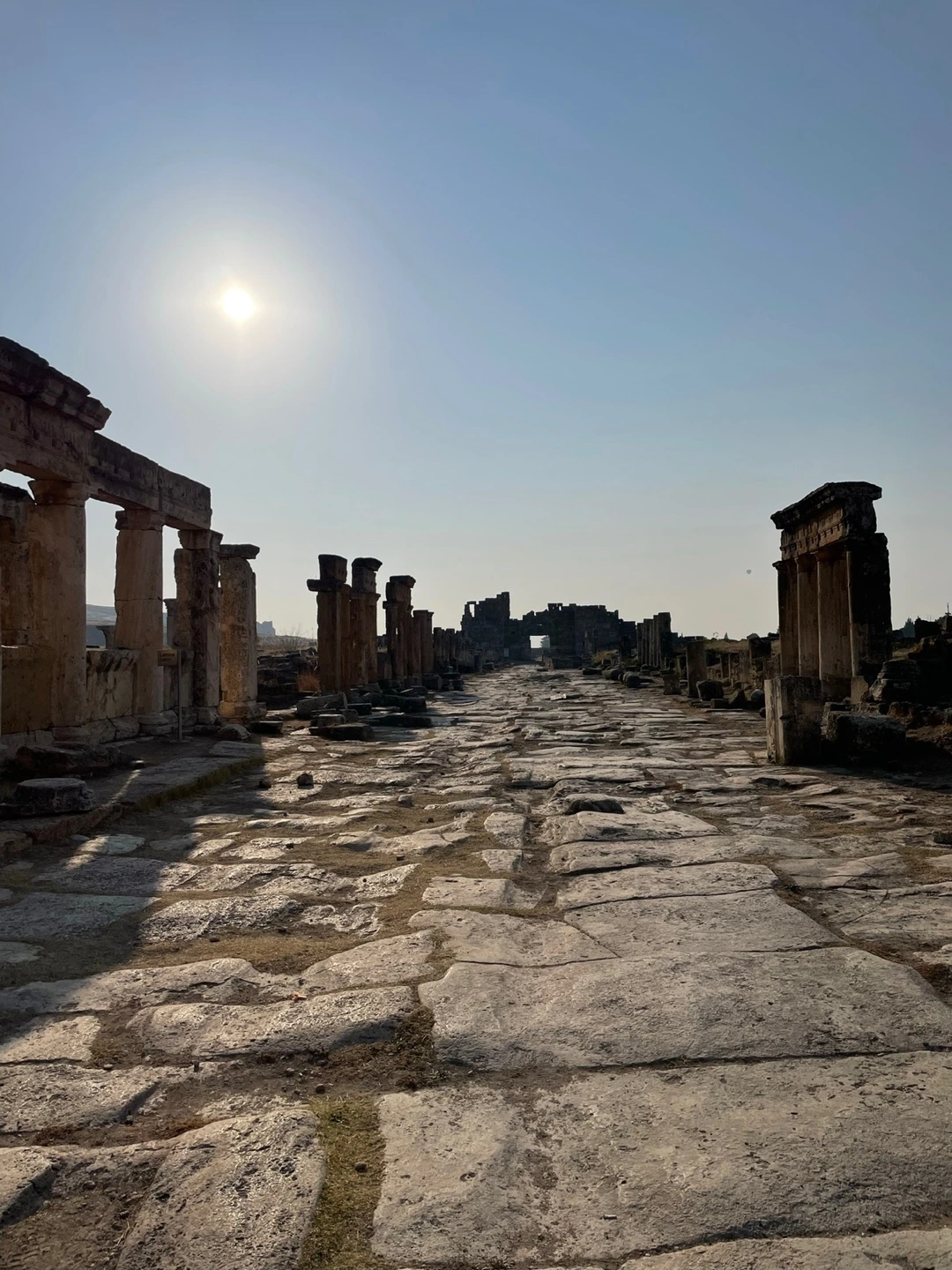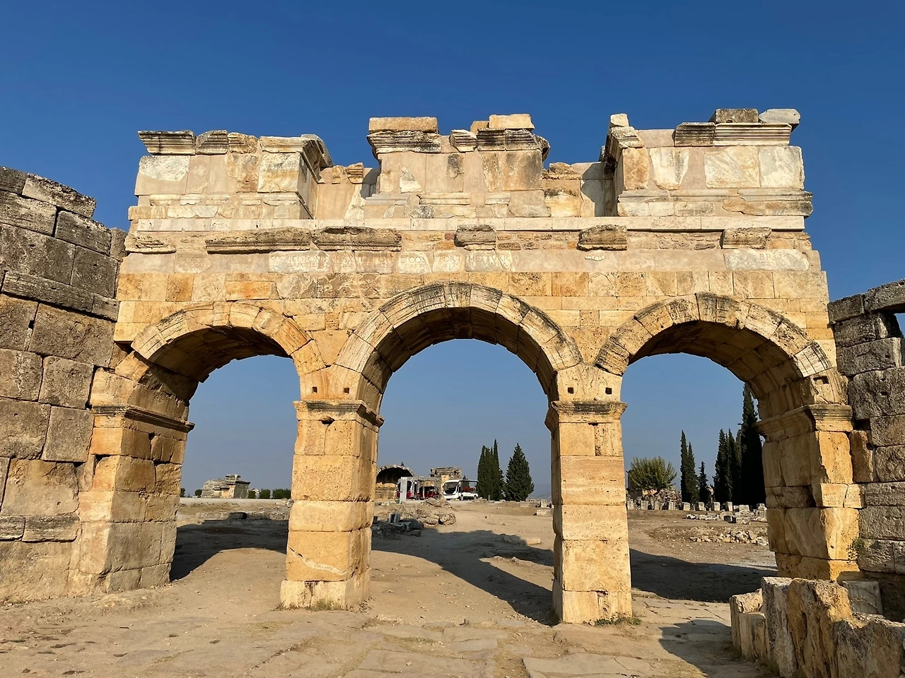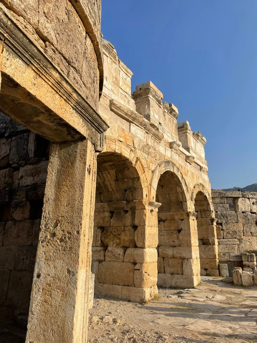 히에라폴리스, 로마시대의 유적이 많이 남아있는 성스러운 도시 히에라폴리스에 왔다. 클리오파트라가 안토니우스와 재혼해서 신혼여행 온 곳이라고 한다. (클레오파트라는 파묵칼레 호수에서 목욕도 했다고 한다.) 많은 유적들이 남아있고 또 복원중이다.