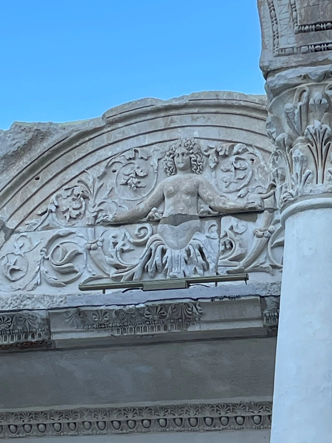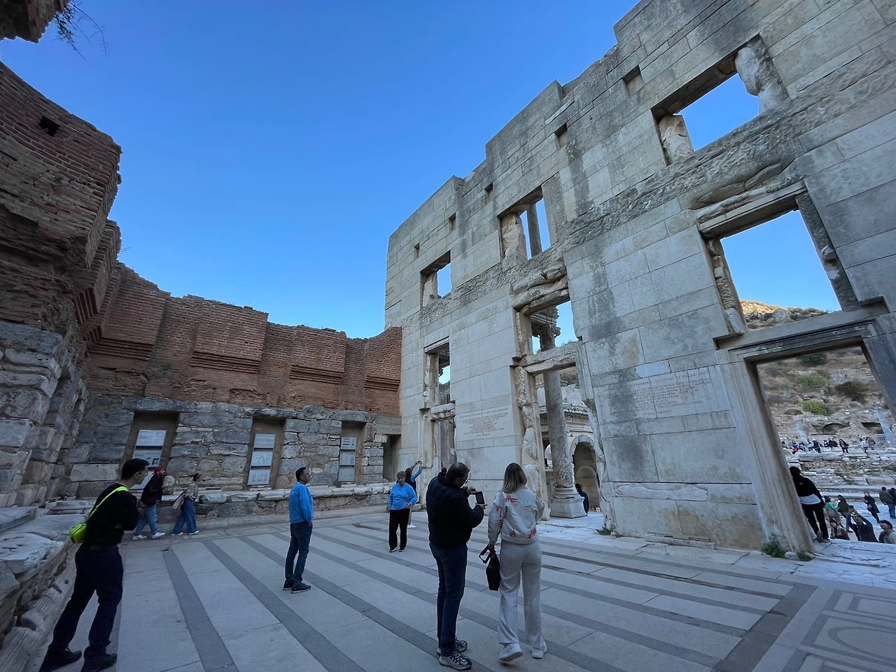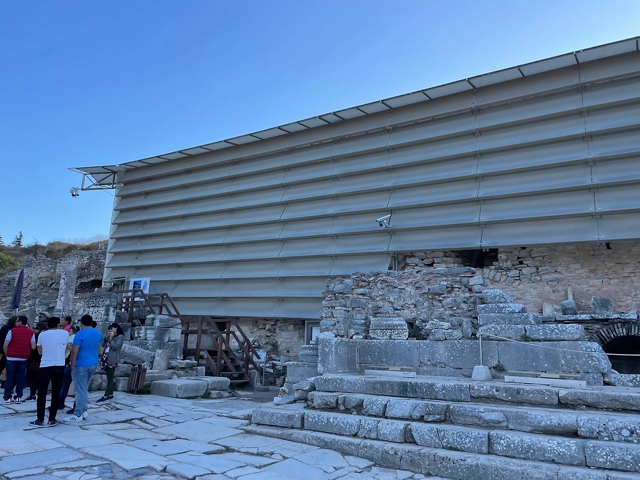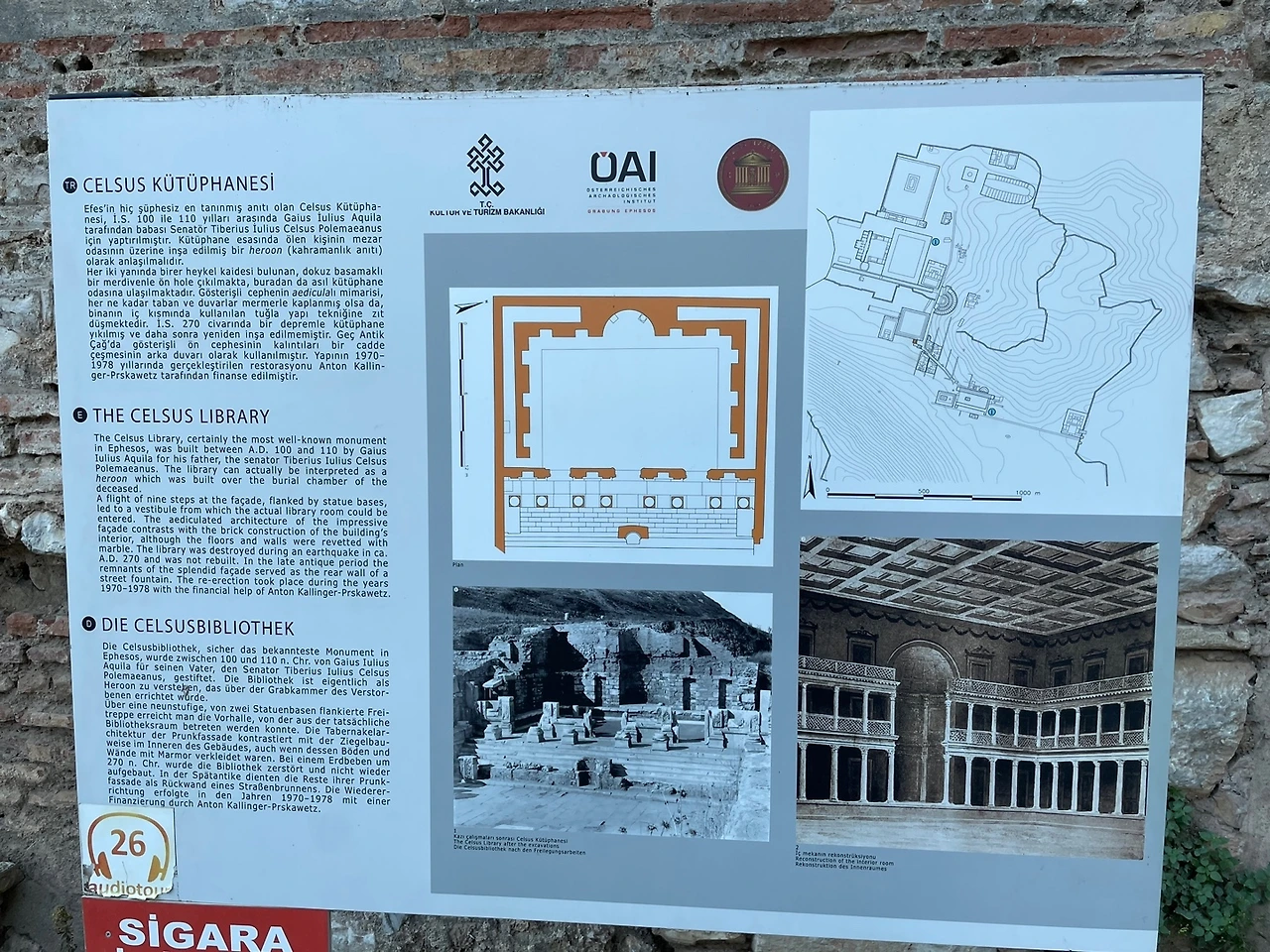 가장 복원 잘 된 유적지로 손꼽히는 셀수스 도서관. 로마는 이집트에서 파피루스를 수입해서 기록용으로 사용하고 있었다. 그런데 갑자기 이집트가 수출을 중지하자 난감해진 로마. 이 때, 황제가 '그럼 우리 양가죽에다 글씨를 써볼까?' 라고 제안했다. 양피지는 타지도 썩지도 않아 최고의 기록용지였다. 그래서 양피지 기록이 발달했고, 이 곳 셀수스 도서관에는 약 17만 권의 양피지 책이 있었다고 한다.
