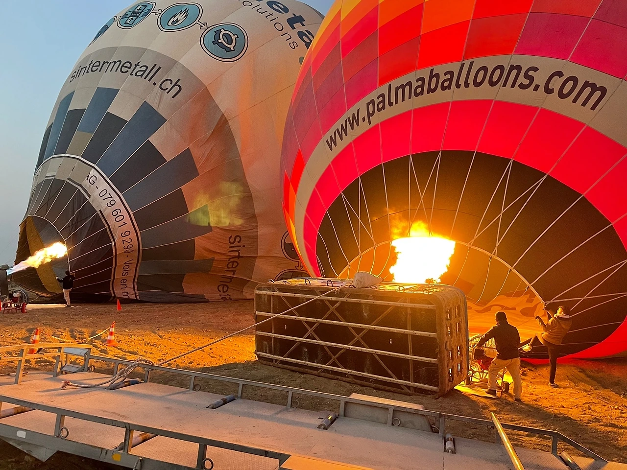 조종사는 불을 쏘아올리며 열기구를 세밀하게 컨트롤하여 착륙시킨다.