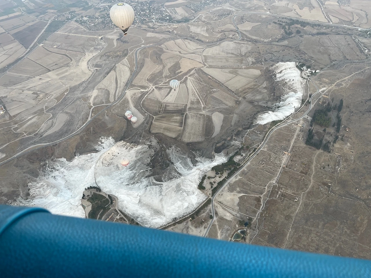 파묵칼레에서는, 그냥 타지 마세요. 카파도키아에서는 그 특이한 지형 덕분에 높은 곳에서 보는 의미가 있겠지만, 파묵칼레는 솔직히 올라가도 별로 볼 게 없습니다. '열기구를 탔다' 정도의 의미라면 괜찮겠지만, 기왕이면 카파도키아에서 타시길 추천드립니다. (날씨 운이 따라야 하겠지만)