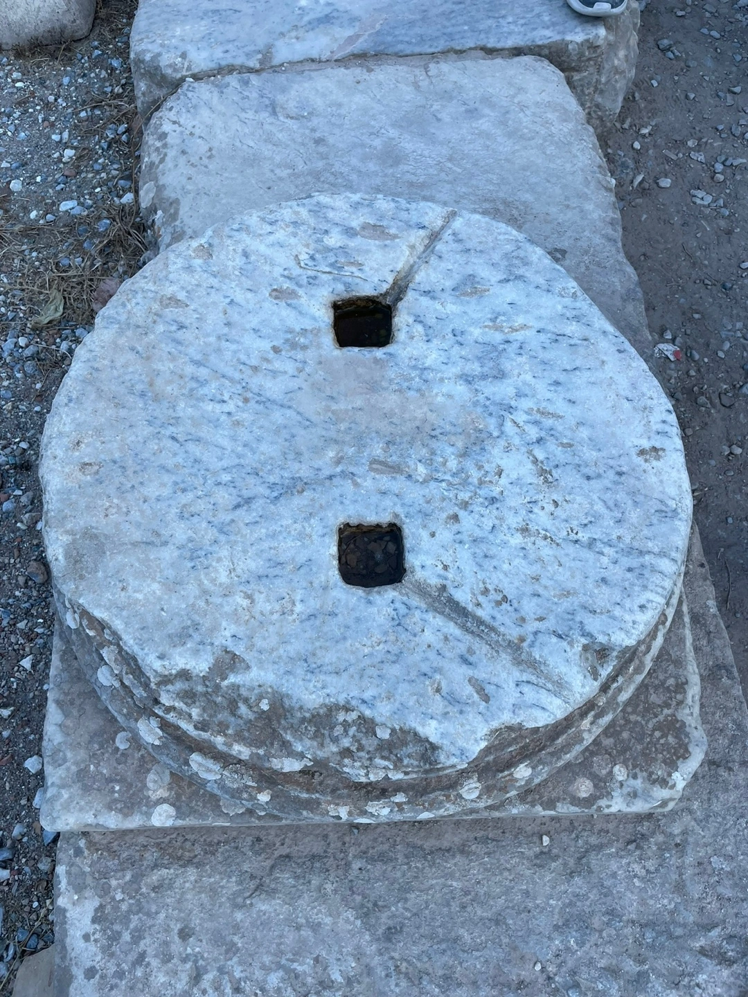 건물 기둥은 몇개의 커다란 대리석 기둥을 쌓아서 만들어진다. 그런데 흔들리면 떨어질 것 아닌가? 그래서 이 때 돌과 돌 사이를 나무조각으로 연결해 서로 강하게 결합한다. 아래 사진의 네모 구멍에 나무 조각을 끼워놓고 일단 기둥을 올린 뒤, 사진의 저 작은 틈(물길)으로 물을 흘려넣어 나무를 '불린다' 그럼 단단히 고정되어 기둥은 절대 흔들려 떨어지지 않게 된다.