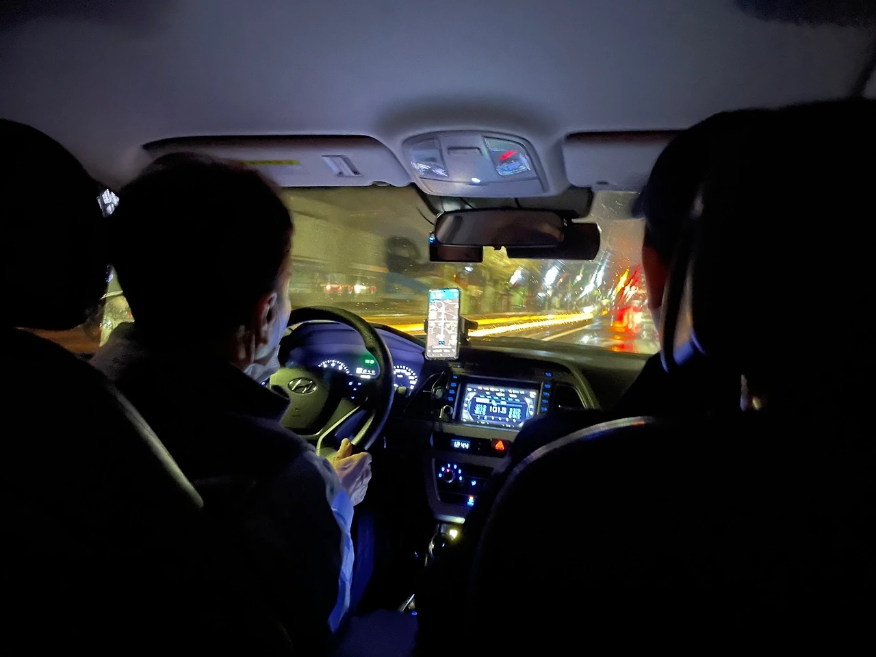 밤이 늦었지만 배가 고팠다. 택시를 타고 근처 국수집으로 이동했다.