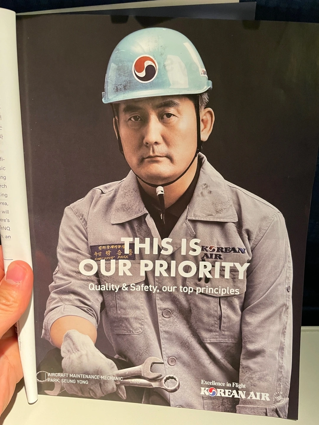 비행기 좌석에 비치된 잡지를 읽었다. 읽던 중, 인상깊은 사진과 문장이 있어서 찍었다. 나는, 업무 우선순위에 대한 고민이 매우 중요하다고 생각한다. 사진 속 저 분은, 단호한 얼굴로 자신의 Priority에 대해 간단명료하게 이야기하고 있다. 나는 과연 'THIS IS OUR PRIORITY' 라고 이야기할 수 있는, 원칙을 갖춘 사람일까?