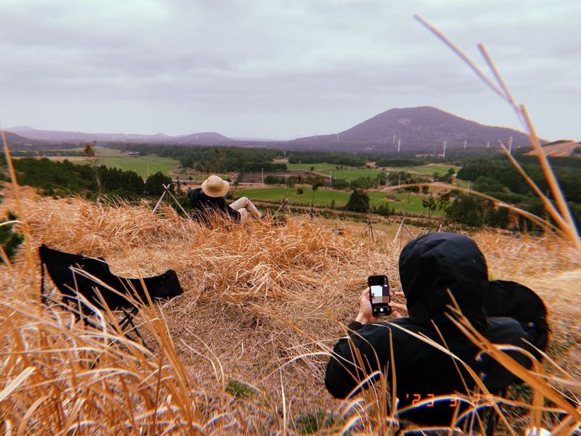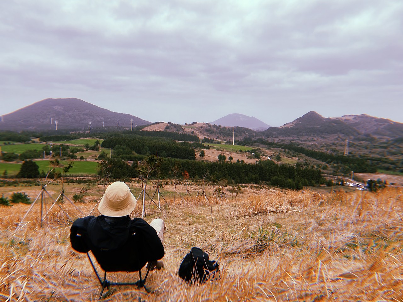 오름 중간에 의자를 펼쳐놓고 한참을 쉬었다. 즐겨하는 게임 이야기 등을 나누었다. (나는 게임을 많이 하지 않아서 주로 들었다) 할 말이 없을 때는, 조용히 앉아 바람을 마셨다. 깊게 들이쉬면, 시원한 바람이 폐 끝까지 들이친다.