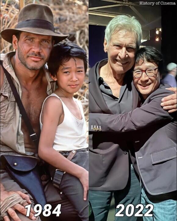 '인디아나 존스: 미궁의 사원' 편에 아역으로 출연한 '조너선 케 콴'이 '에브리씽 에브리웨어 올 앳 원스'의 남편 역할로 아카데미 남우조연상을 수상했다. 해리슨 포드와 시상식에서 다시 만났는데, 뭉클한 장면이다. 시간을 초월한 우정은 이토록 아름답다. 수상을 축하합니다.