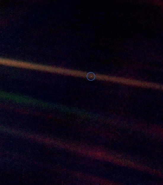 칼 세이건이 그의 책 <창백한 푸른 점> 에서 위 사진에 대해 묘사한 글을 읽어보자. 꼭 읽어보자.