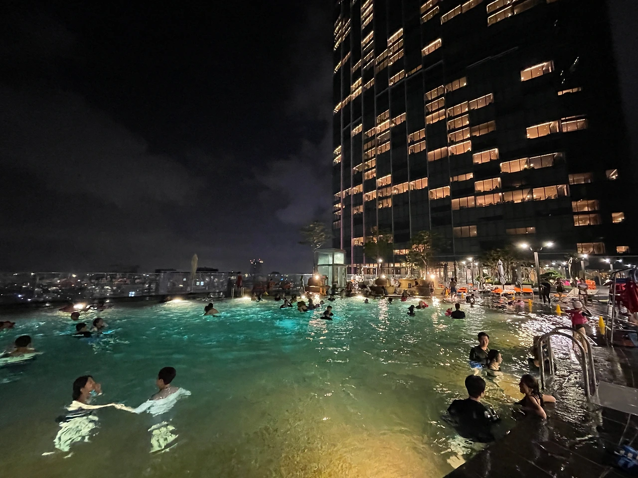 저녁 수영은 어떤지 와봤다. 어째 낮보다 사람이 더 많다. 풀파티 같은 분위기다. 물이 따뜻해서 적당히 즐기기 좋다. 별거 안하고 물에 떠있다가 들어왔다. 수영장에서 다시 느꼈지만 이 호텔에는 중국 관광객이 정말 많다.