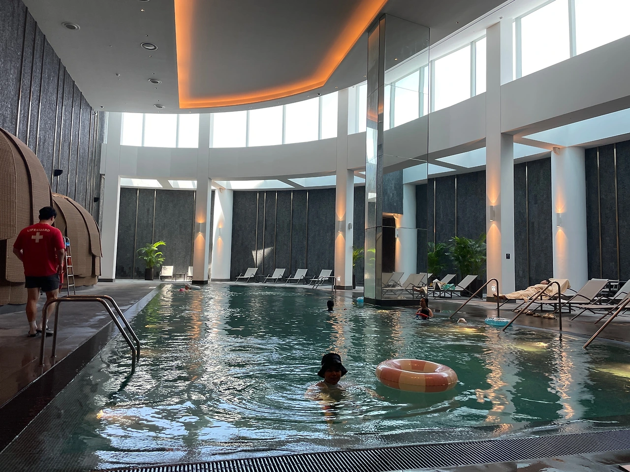 실컷 쉬다가 수영장에 내려왔다. 몇 바퀴만 돌고 올라가야겠다. 오늘도 사람이 별로 없이 한적하다. 다들 관광 나갔나보다. 유유자적 물에 둥둥 떠다닌다.