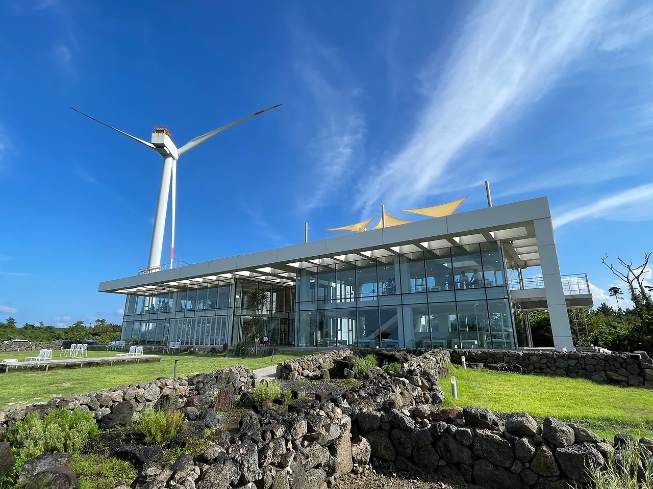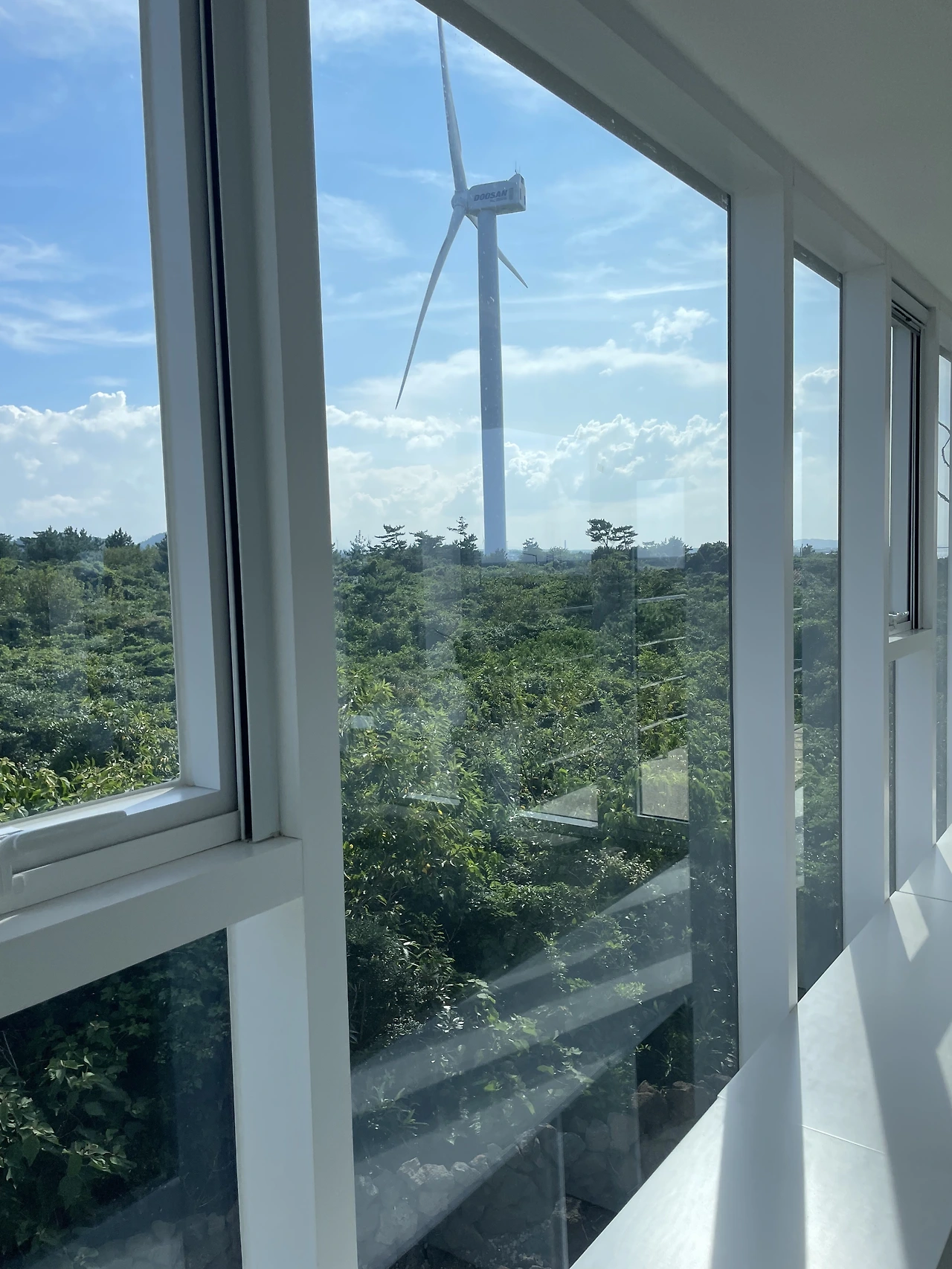 많이 걸었으니 좀 쉬어보자. 델문도에 와봤다. 함덕 델문도가 클래식하다면, 김녕은 좀 더 모던하다. 흰색 인테리어가 깔끔하구나. 큰 풍력발전기가 옆에 있어서 어쩐지 비현실적이다.