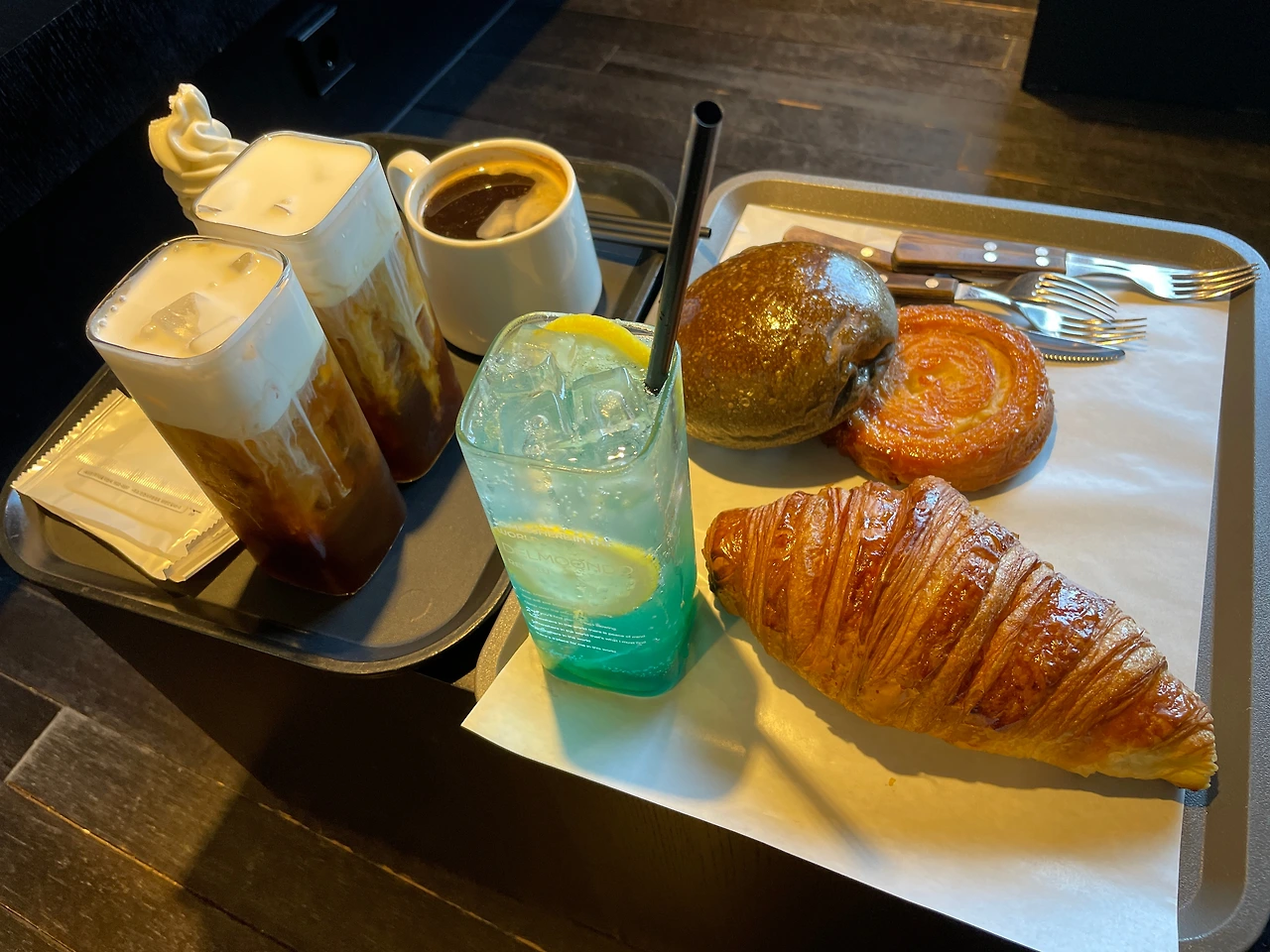 몇 가지 주문해서 먹었다. 빵은 여전히 맛있고, 음료는 시원하고 달다. 커피는 산미가 있더라. 나는 고소한게 좋다. 사진도 찍고 이야기도 나누었다.