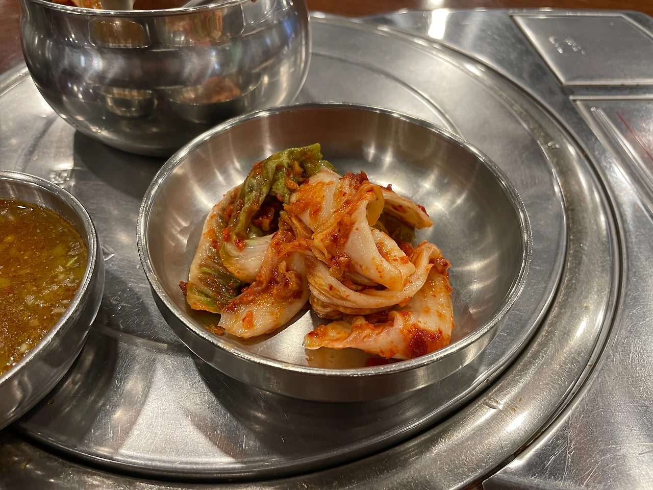 김치는 시원하고 산뜻한 맛이다. 명동칼국수 식의 찐한 김치도 좋아하지만, 각자의 음식에는 어울리는 김치 스타일이 있는 법. 이미 진한 해장국의 맵고 짠맛에는 이런 식의 상콤한 김치가 어울린다. 자극적인 국물을 한 입 먹고 김치로 입을 달래주면 질리지 않고 오래 먹을 수 있다.