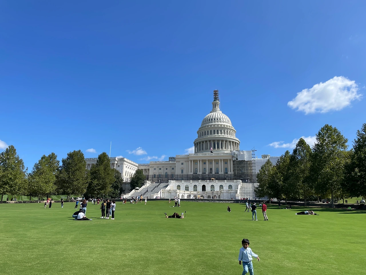 워싱턴DC에서는 국회의사당보다 높은 건물을 지을 수 없다. 그래서 도시가 전체적으로 낮고 개방감이 좋다. 무엇보다 부러운 건 관리가 정말 잘 된 의사당 앞 공원이었다. 잔디 질이 좋아서 맨발로 걷고 눕고 하기에 안성맞춤이었다. 가족들이 많이 와서 한가로운 시간을 즐긴다.