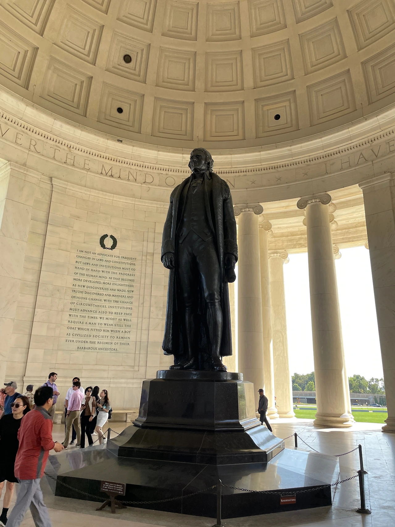 판테온 따라 만든 느낌이 드는데. 미국의 3대 대통령이었던 토머스 제퍼슨을 기리기 위해 건축했다. 독립선언문 작성 위원이었으니, 이 정도의 대우는 당연하다. (여기서 안경을 잃어버렸다. 선글라스를 쓰느라, 접어서 티셔츠 목에 걸어놨는데 어디선가 빠졌나보다.)