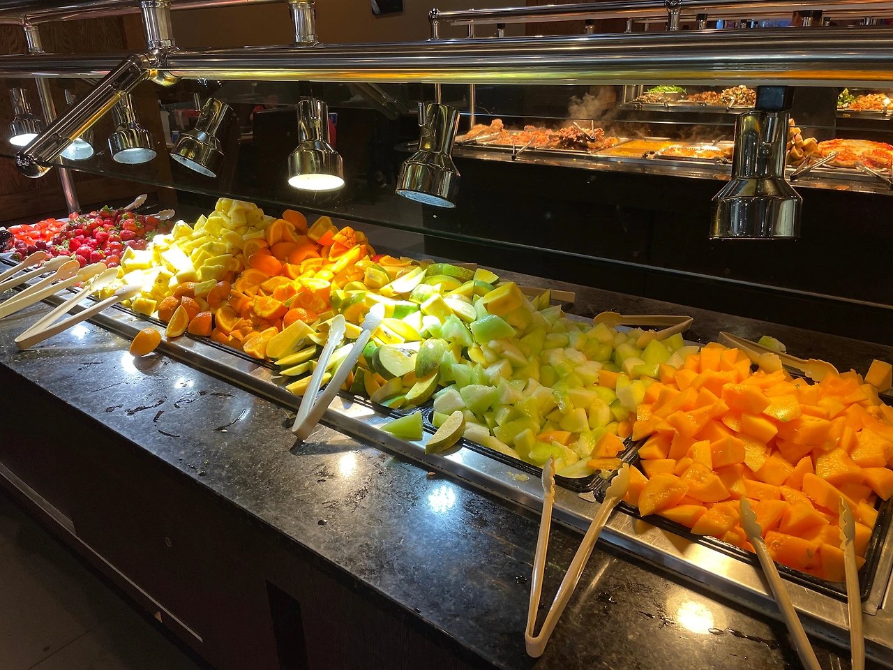또! 예의 그 중국풍 부페인데, 미국은 이런 스타일의 식당에게 점령당한 것인지? 아까 먹다가 질려서 이제 손이 전혀 안간다. 과일만 조금 먹고 나왔다.