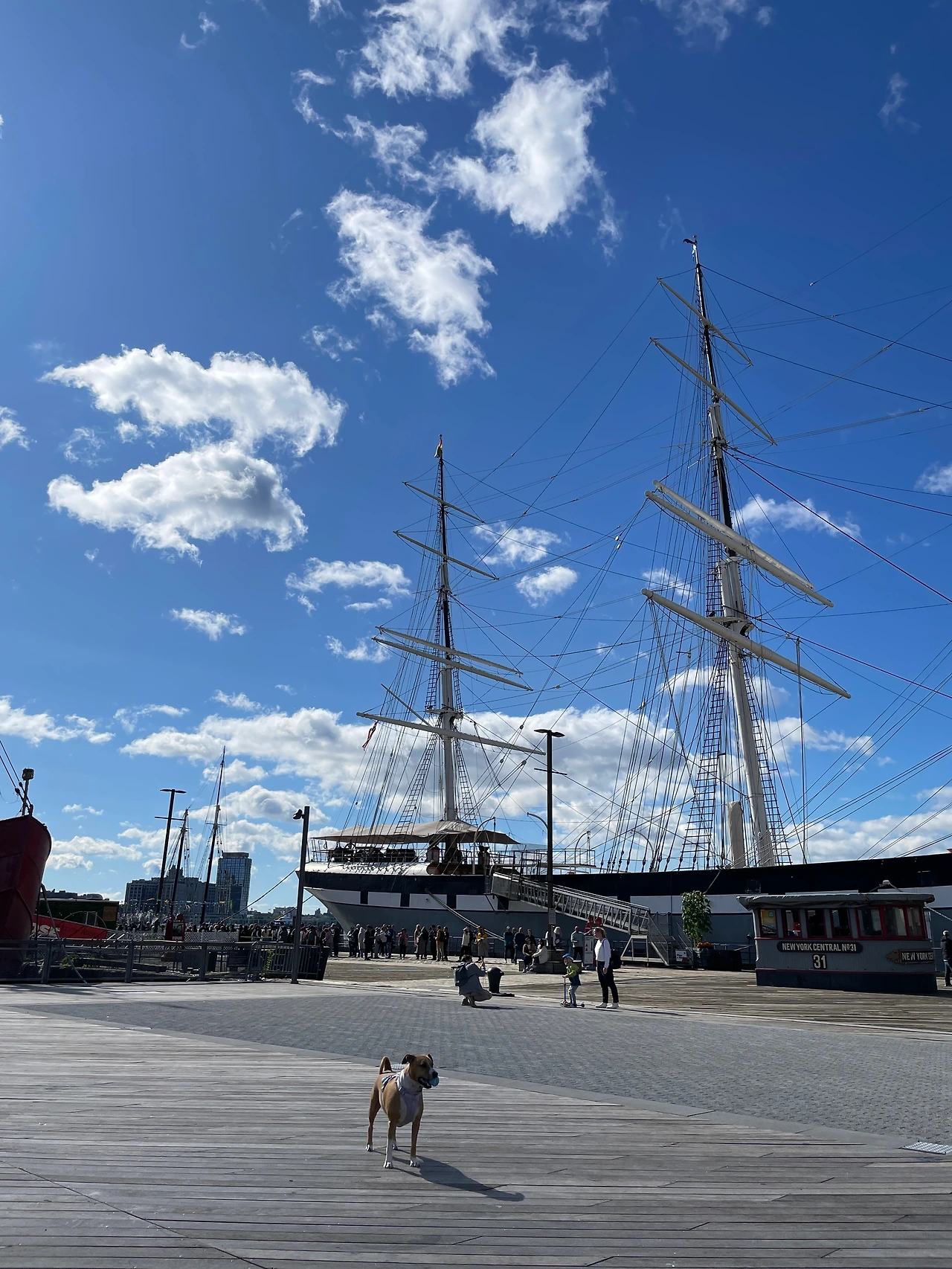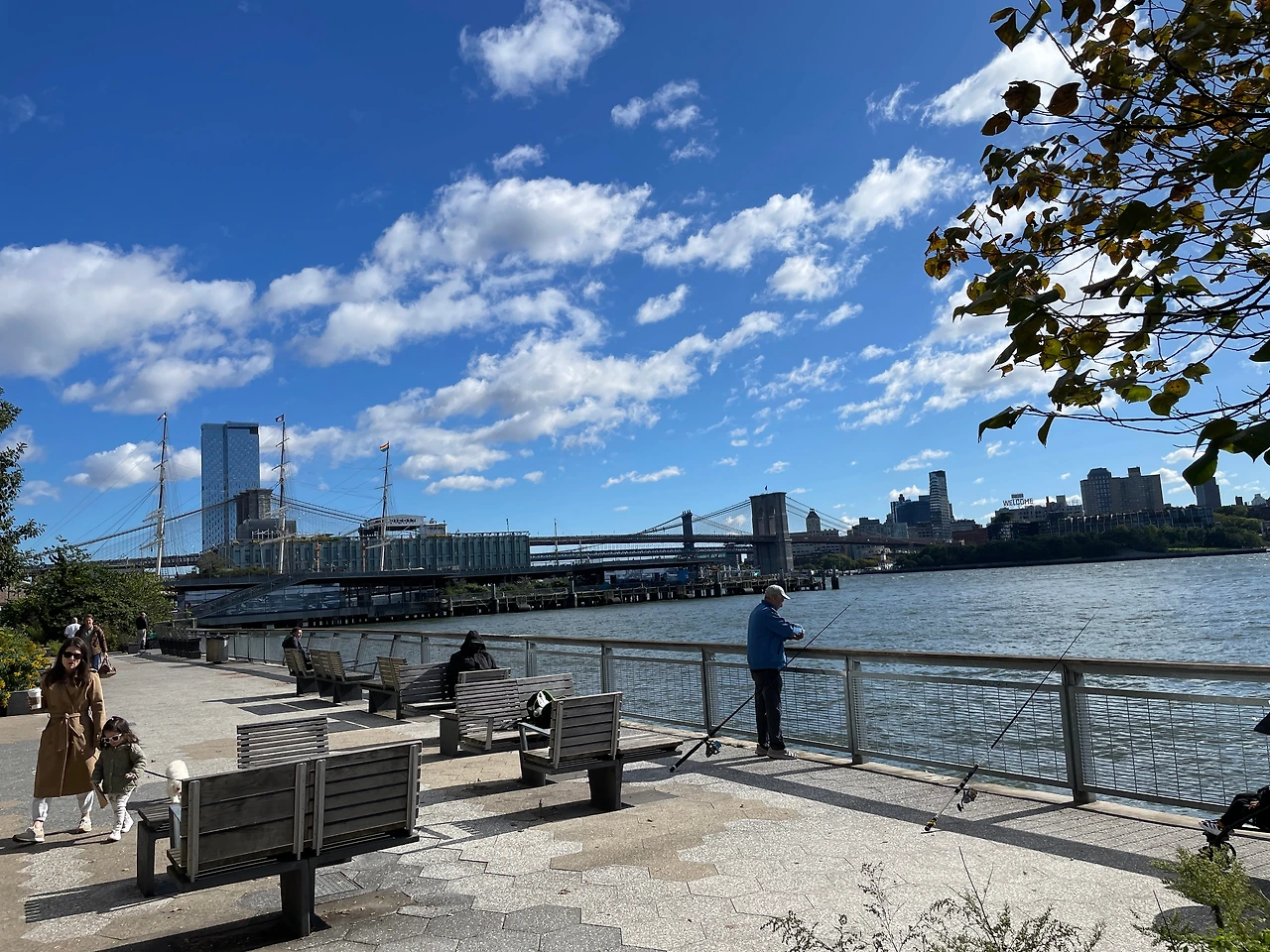 선착장 앞에서 저 멀리 브루클린 브릿지가 보인다.
