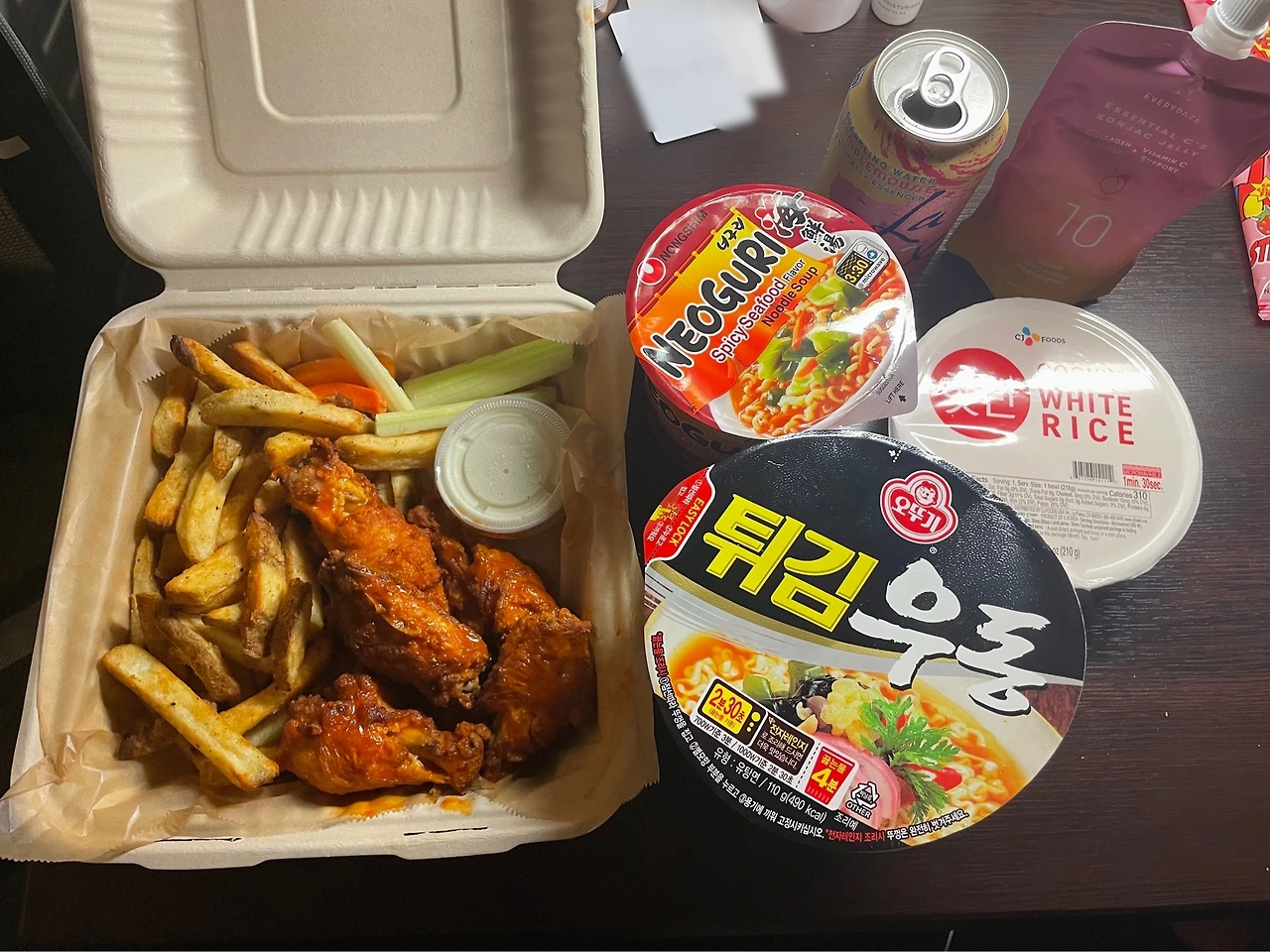 호텔로 돌아와서 저녁을 먹는다. 저녁은 컵라면과 포장해 온 감자, 윙 뭐 그런건데 간단히 먹고 쉬려고 한다. 이따가 늦은 밤 투어버스를 타러 가기 때문이다. 2층버스를 타고 뉴욕을 돌며 야경을 관람할 예정이다.