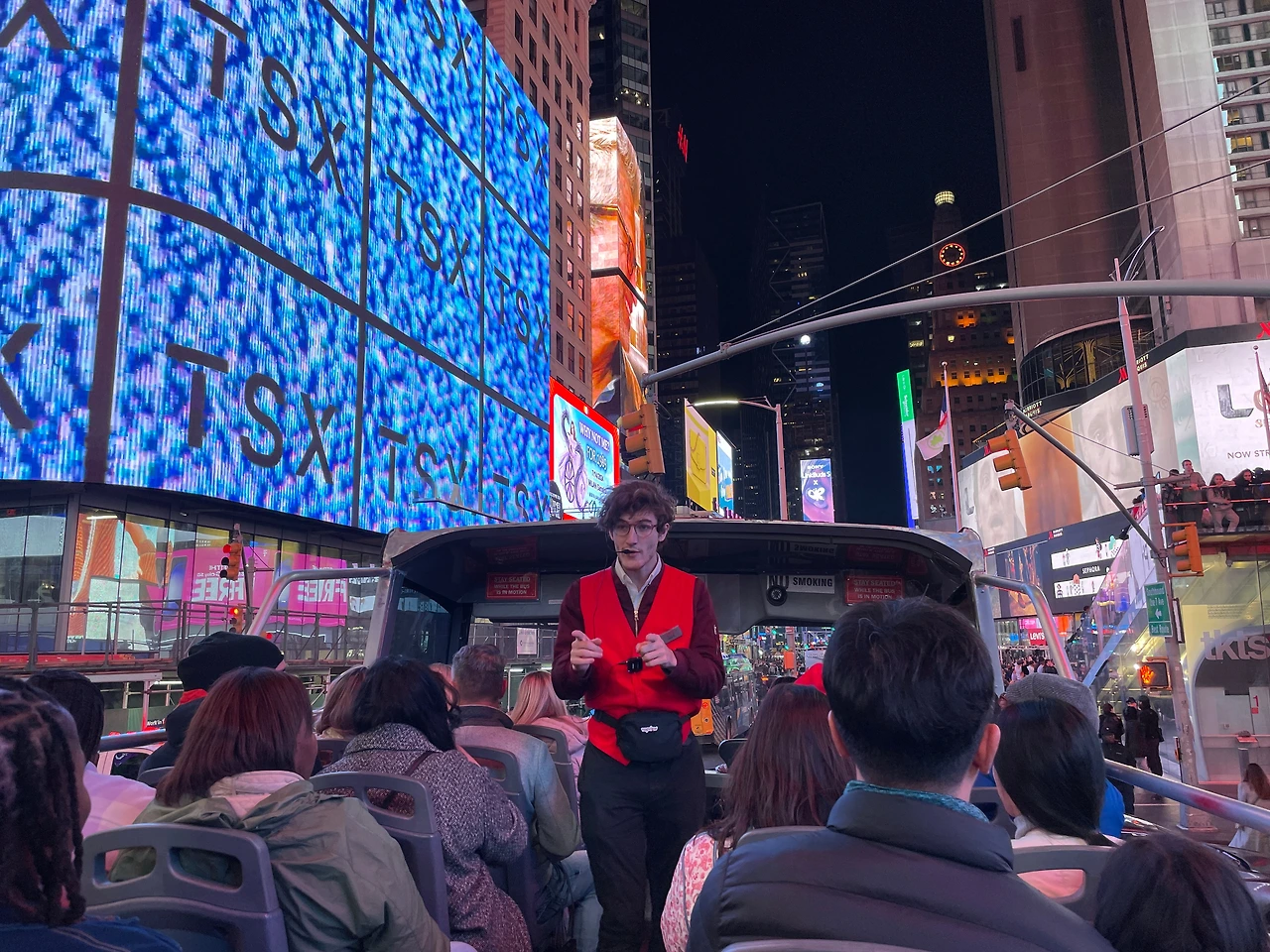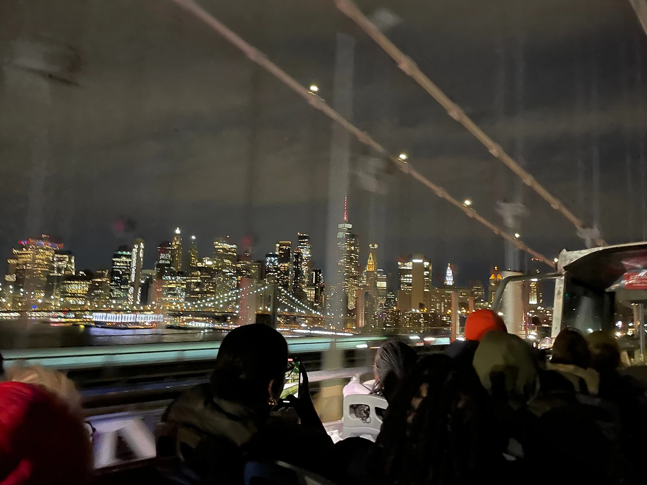 2층 버스 상단에 앉아 달리며 뉴욕의 밤 경치를 감상한다. 타임스퀘어에서 다운타운을 한시간 가량 돈다. 밤 공기가 찬데다가, 달리는 버스 2층에 있다보니 굉장히 춥다.
