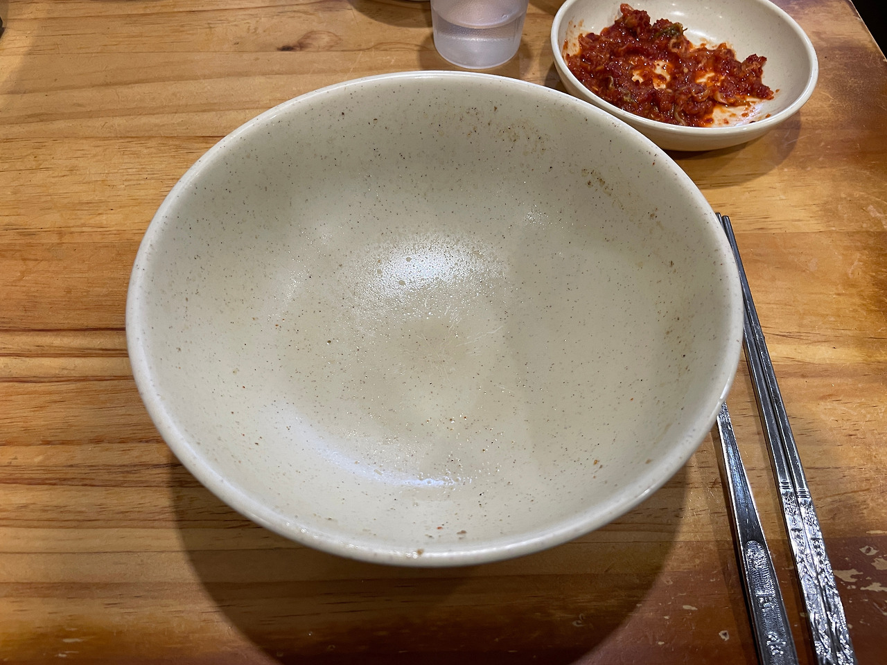 여전히 맛있다. 약간 걸쭉할 정도로 진한 고기국물에 부드럽고 쫄깃한 면발. 거기에 곁들이는 매운 김치의 조합. 김치는 강한 나트륨 맛이다. 건강에 어떤 영향을 줄 지는 모르겠지만, 맛있는 건 맛있는거다. 나는 나트륨을 이길 수 없다. 잊을만 하면 자꾸 생각나는 맛. 어쩌면 김치 때문에 여기까지 홀린듯 걸어왔는지도 모르겠다.