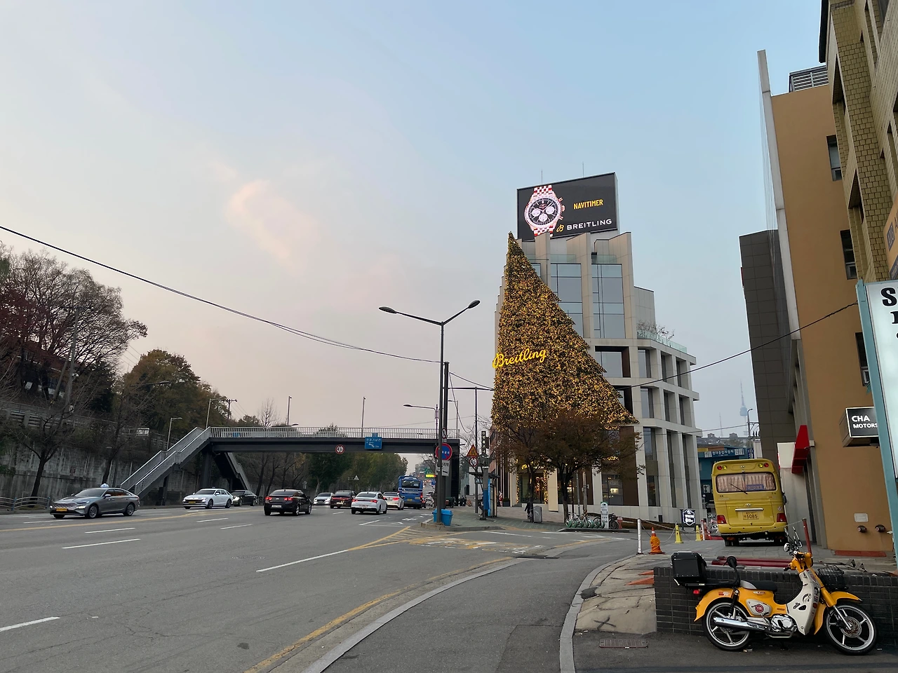 이태원 브라이틀링 매장에 크리스마스 분위기가 물씬 풍긴다.