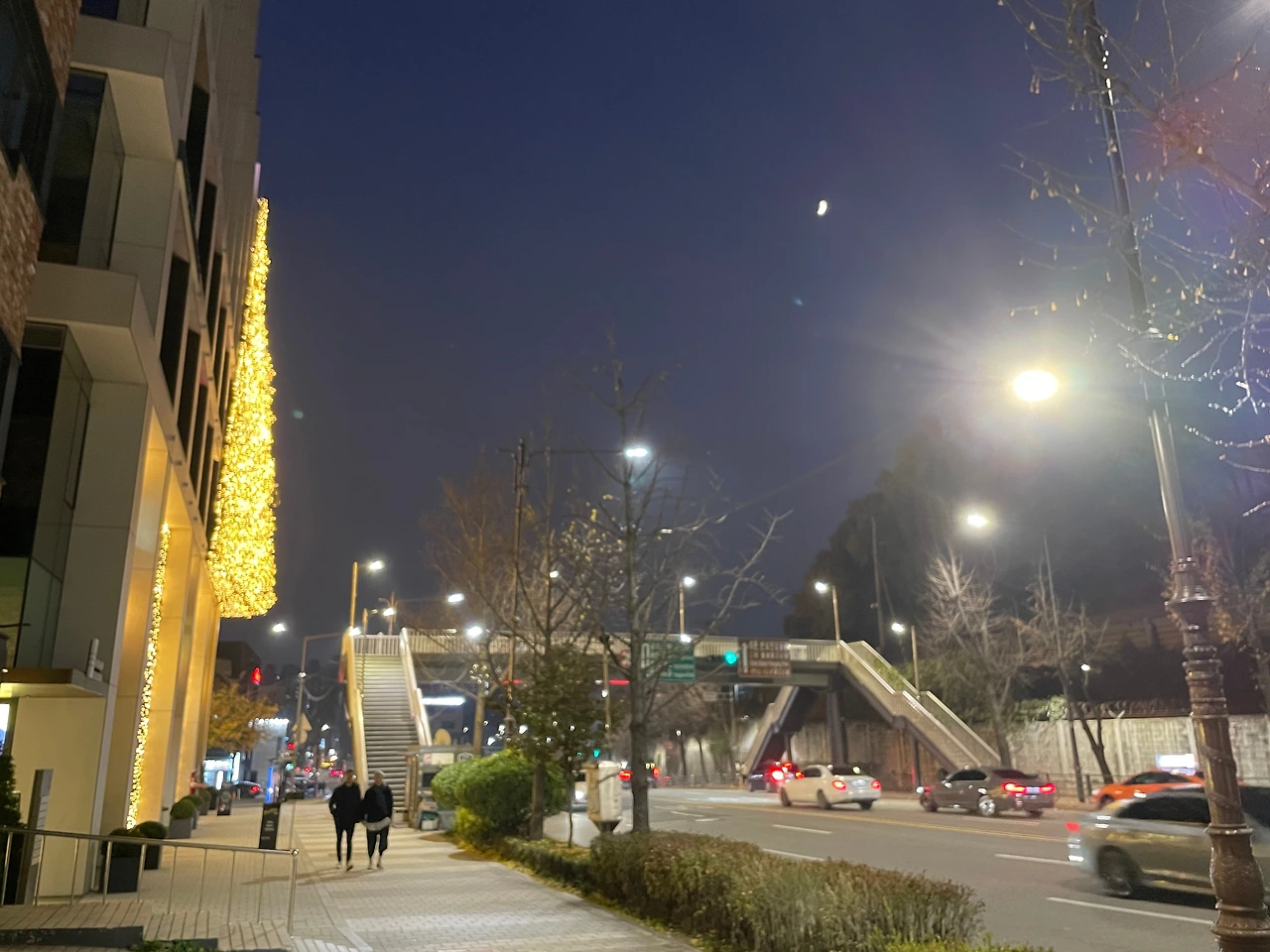 먹고 나왔더니 이미 해가 저물었다. 어둡고 춥다.