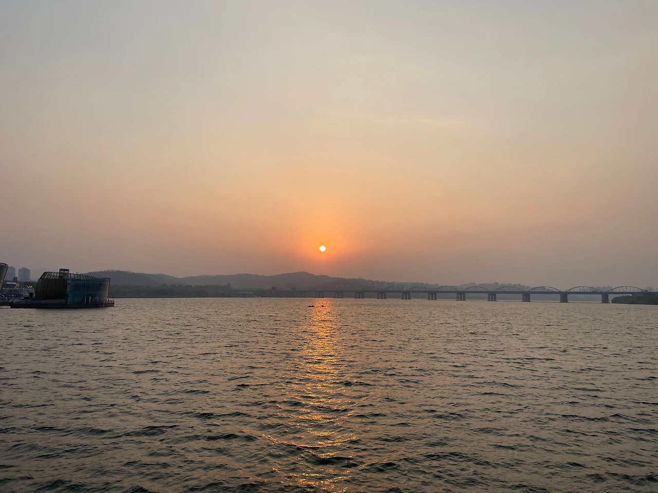 한강을 만났다. 서늘한 추위에 한강도 조용하다. 차분하게 흘러가는 한강 앞에 잠시 앉아 경치를 감상한다.