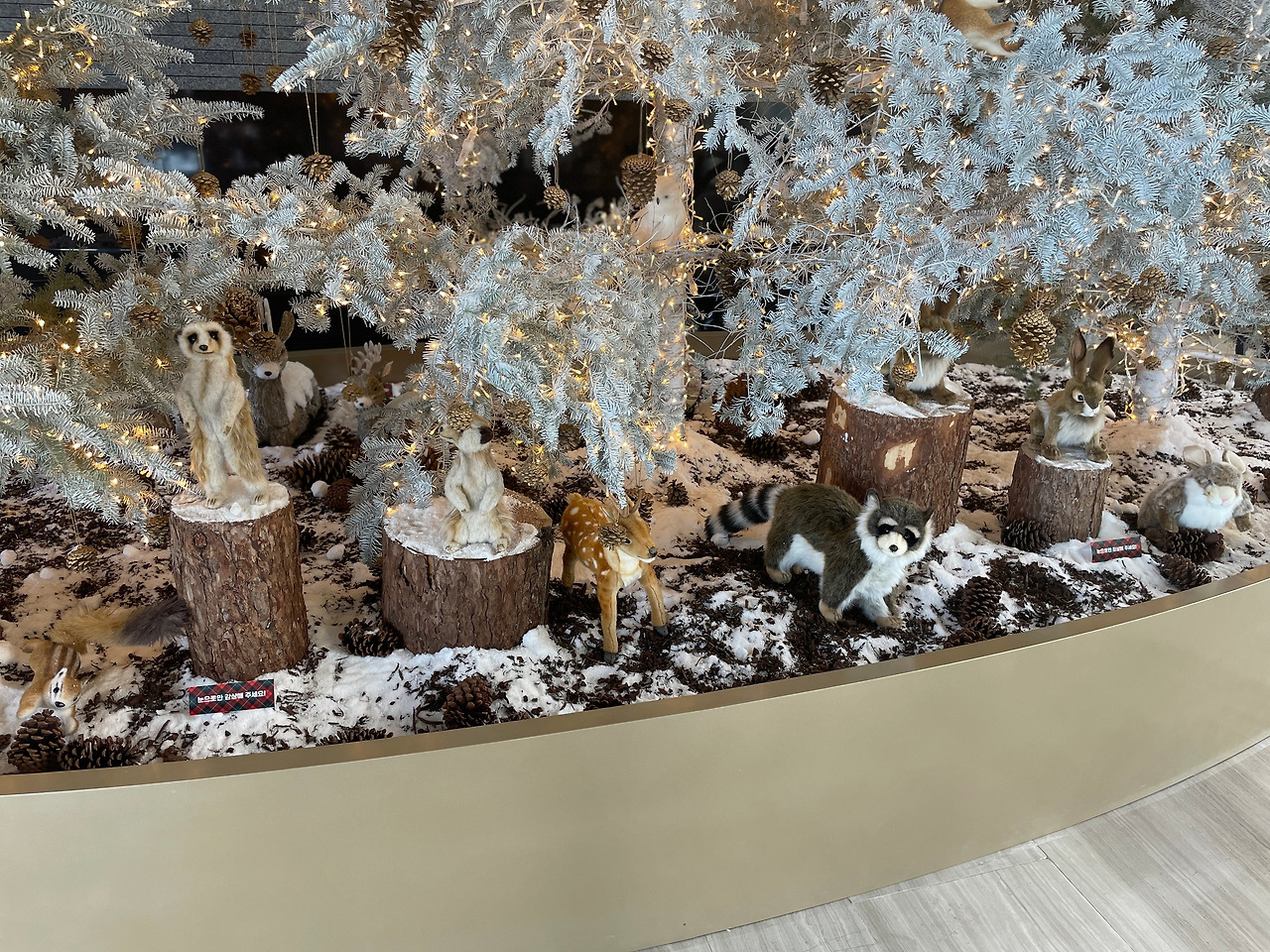 트리 아래에 옹기종기 모인 동물 친구들이 귀엽다.