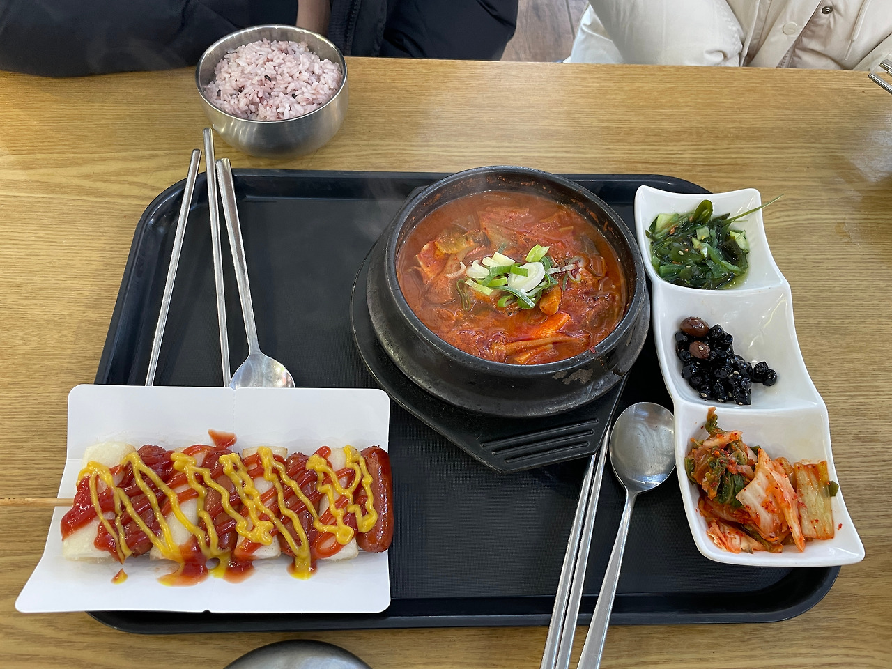 배고프다. 아침을 간단히 먹자. 김치찌게에 밥 하나만 추가. 근데 소떡소떡은 참을 수 없지. 소떡소떡도 추가. 그만 추가하자.