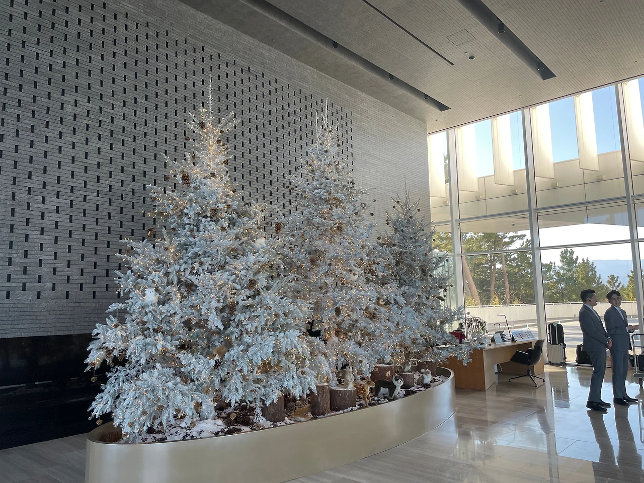 크리스마스가 얼마 안남났구나. 큰 트리가 서 있다.