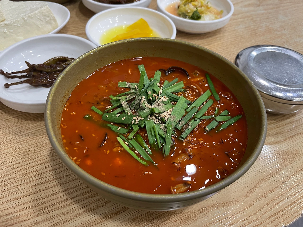 오늘의 메인 짬뽕 순두부. 이 집이 짬뽕순두부의 원조라던데, 그건 잘 모르겠고. 고기 베이스 국물에 각종 해산물이 곁들여 푹 끓인 맛이다. 거기에 순두부가 들어가 담백하다. 얼큰하고 깊다. 술은 안마셨지만 해장하는 기분이다. 집 근처에 이런 가게 있으면 참 좋겠다.