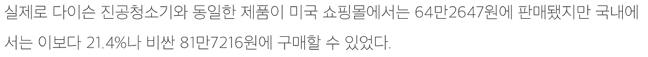 하나만 더 확인해보자. 청소기로 유명한 '다이슨'. 여긴 더 심각하다. 한국만 비싸게 파는 것에 더불어 A/S는 신경도 안쓴다. 비싸게 팔고, 관리는 무시해버린다. 호구도 이런 호구가 없다. 하지만 괜찮다. '여기서는 그래도 되니까' 다들 집에 다이슨 청소기 하나 쯤은 놔야 제법 그럴듯 하다고 생각하니, 너도나도 팔아준다. 인테리어의 완성은 역시 다이슨 아니던가? 헤어 드라이기도 비싼 다이슨으로 하나쯤 있어야지. 어쩐지 더 고급스럽게 머리를 말릴 수 있는 것만 같다. 인스타그램에 올리는 건 물론이다. 비싸고 A/S는 엉망인데, 없어서 못산다. 줄을 선다.