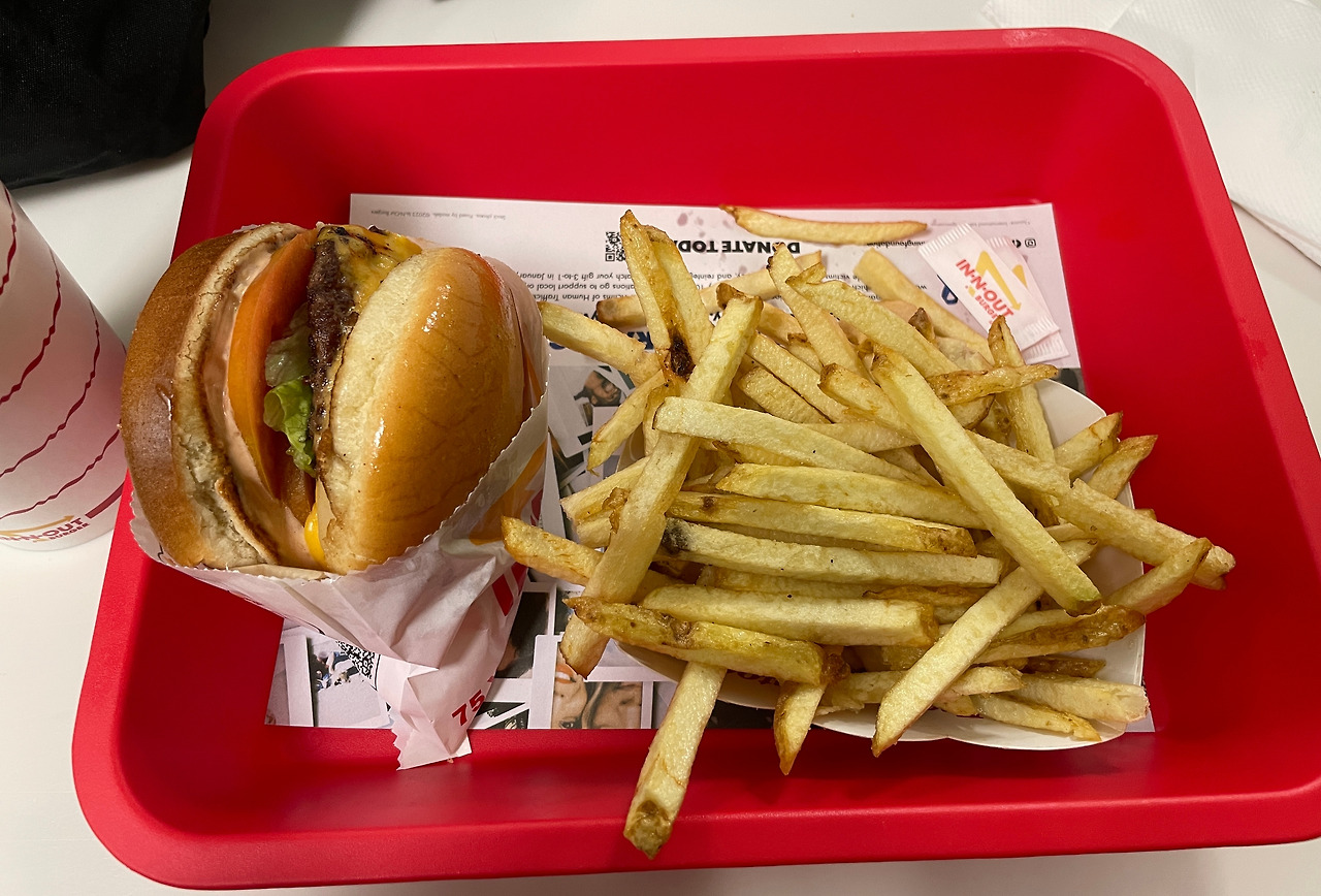 동부에 '쉑쉑'이 있다면 서부엔 '인앤아웃'이 있지. 햄버거를 좋아하는 1인으로서 안 먹을 수 없다. 드디어, 마침내 인앤아웃을 먹는구나. 햄사모 여러분, 제가 대표로 먼저 한 번 먹어보겠습니다.(모임에서 따로 맛공유 하겠습니다요.)