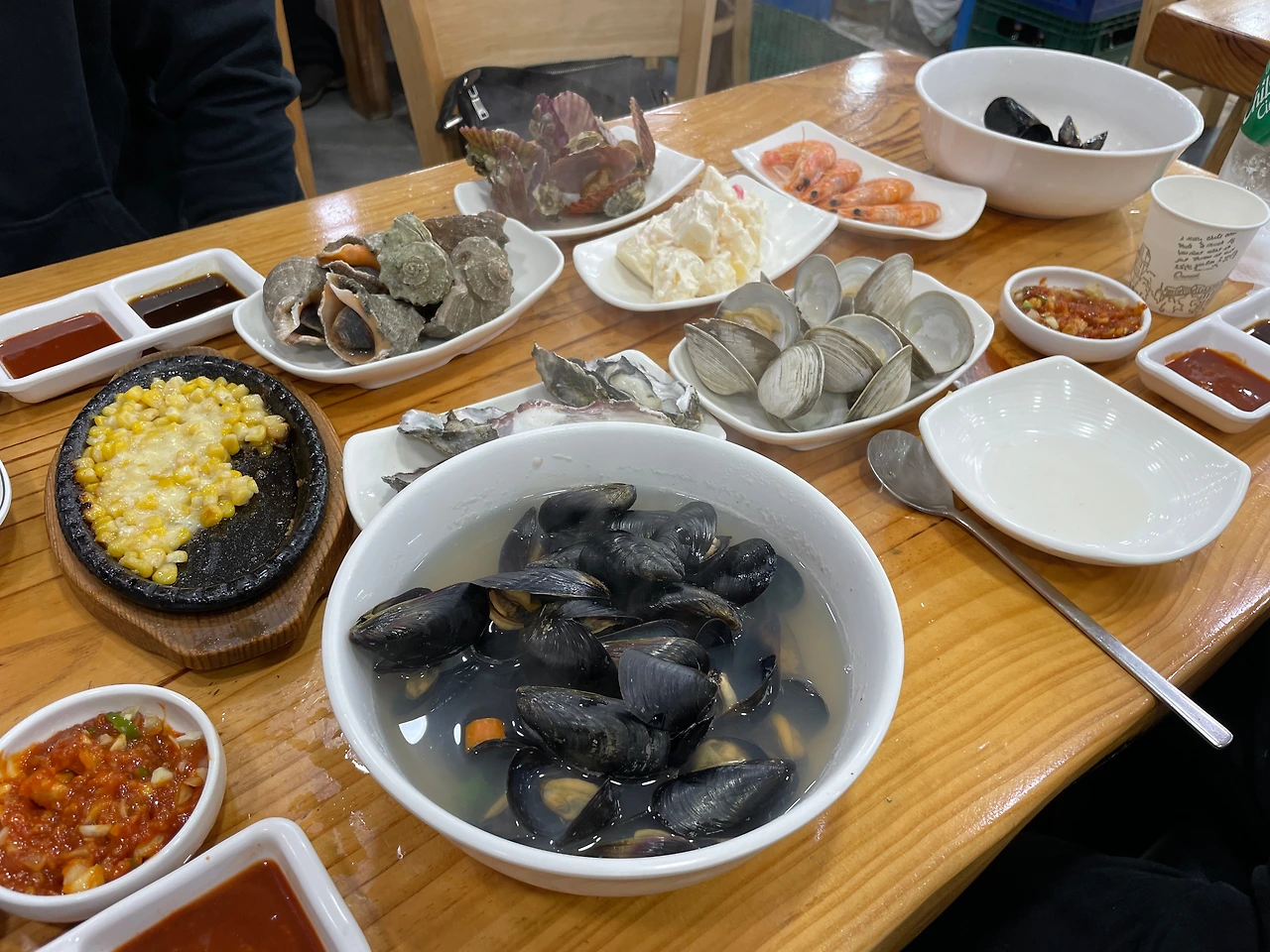 요새는 메뉴 고르는 것도 일이다. 이렇게 정해서 주는 가게에 오면 마음이 편하다. 갖가지 해산물과 회가 줄줄이 나온다. 신선하다. 그래서 맛있다. 역시 산지에서 먹어야하나보다.