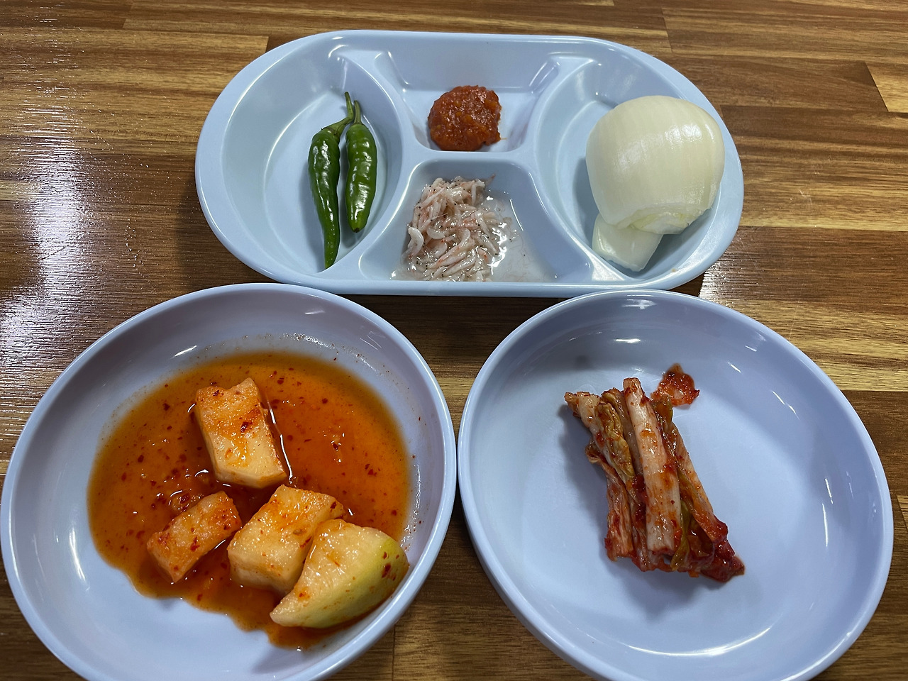 왜 그런진 모르겠지만, 국밥엔 어쩐지 김치보다 깍두기가 손이 간다. 한 번 먹어보니, 시원하고 상큼한 맛이다. 모자라면 셀프로 가져다 먹으면 된다.