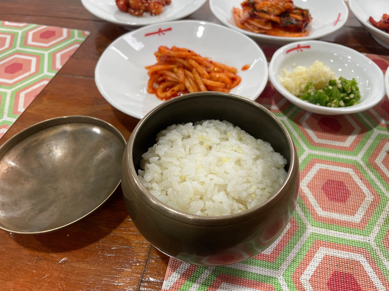 이런 걸 뭐라고 부르지? 방짜유기라고 부르던가. 아무튼 놋쇠로 된 밥그릇이 맘에 든다. 대접받는 기분이고, 어쩐지 밥이 더 맛있다. 흰 밥에 조가 섞여있어 보기에도 예쁘다.