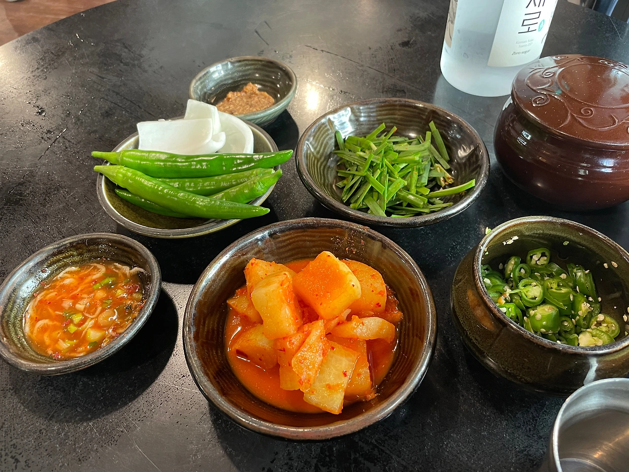 앉자마자 후다닥 밑반찬이 세팅된다.