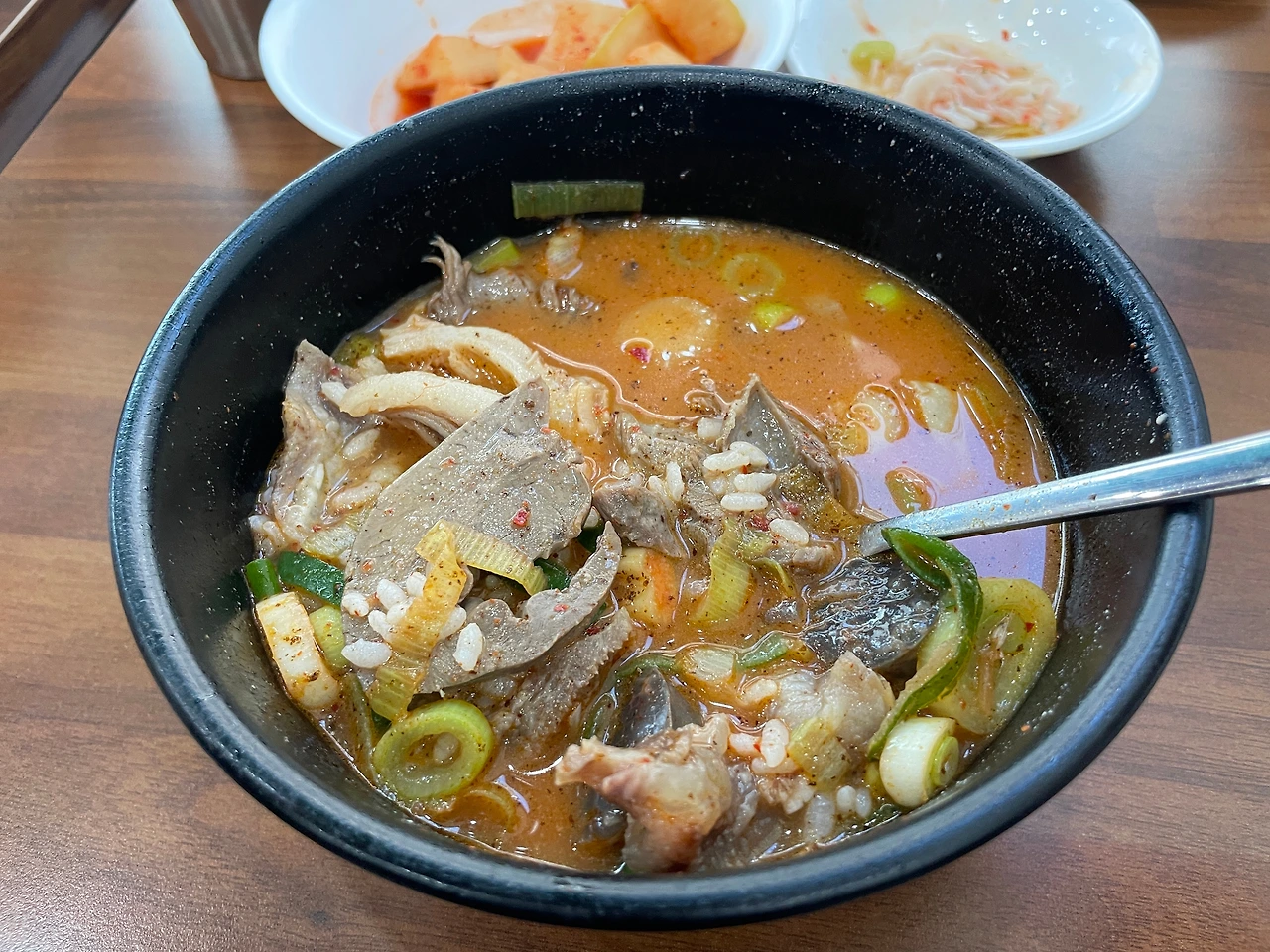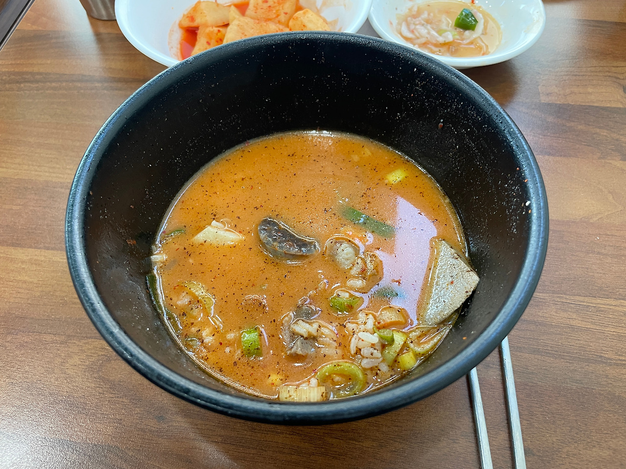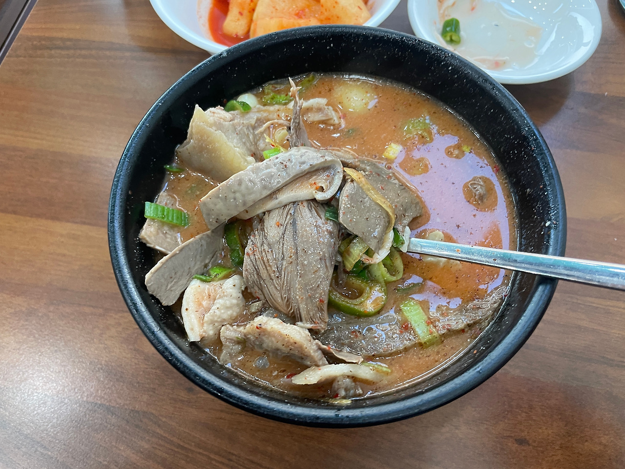 국물 부터 한 숟가락 먹어본다. 깨끗하고 맑다. 곰탕같은 모양새. 밍밍하다. 별 맛이 안난다. 이게 순댓국 매니아들에게는 호불호가 있을 듯 하다.