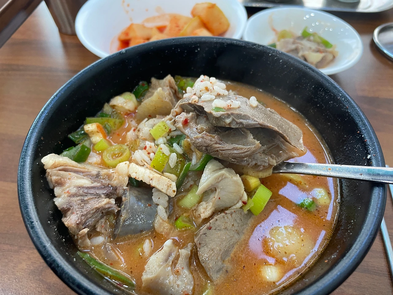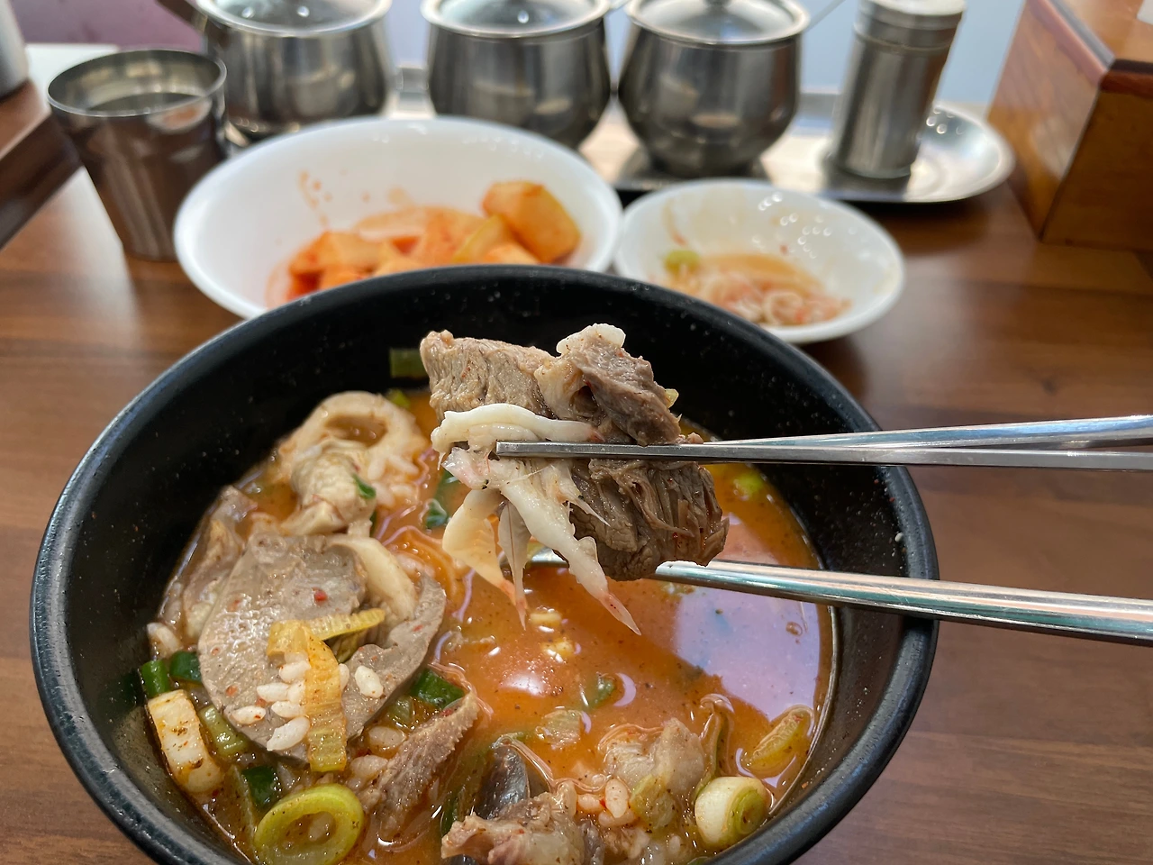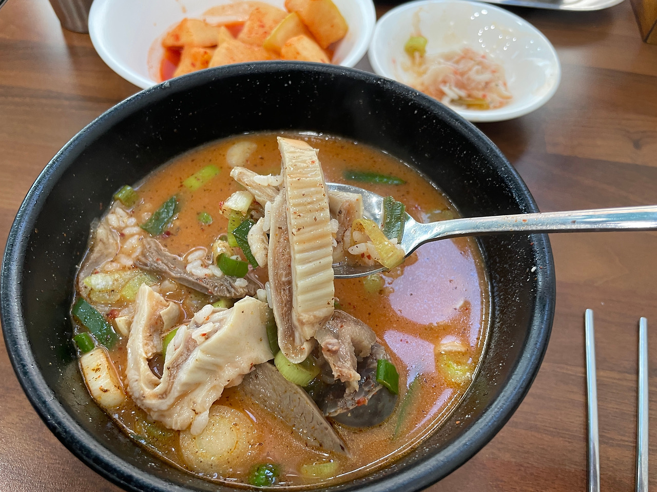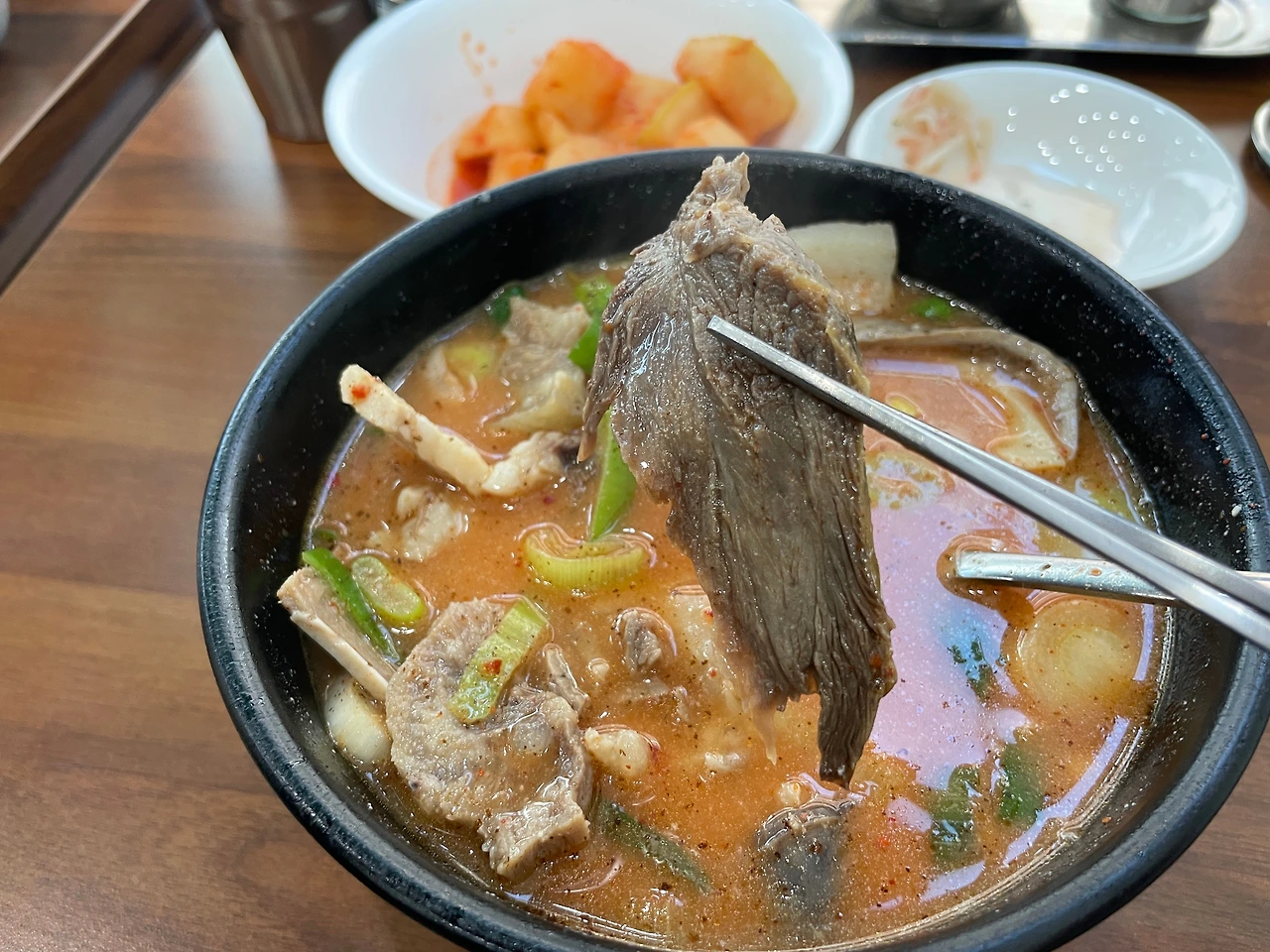 하지만 어쩌랴. 맛있는 건 사실이니. 가볍고 깨끗한 국물이 부담스럽지 않아 술술 들어갔다. 거기에 큼직하고 쫄깃 탄탄한 고기까지 완벽한 조화를 이룬다. 뚝배기에 고개를 처박고 정신없이 먹었다. 이렇게 먹은게 얼마만인지 모르겠다.