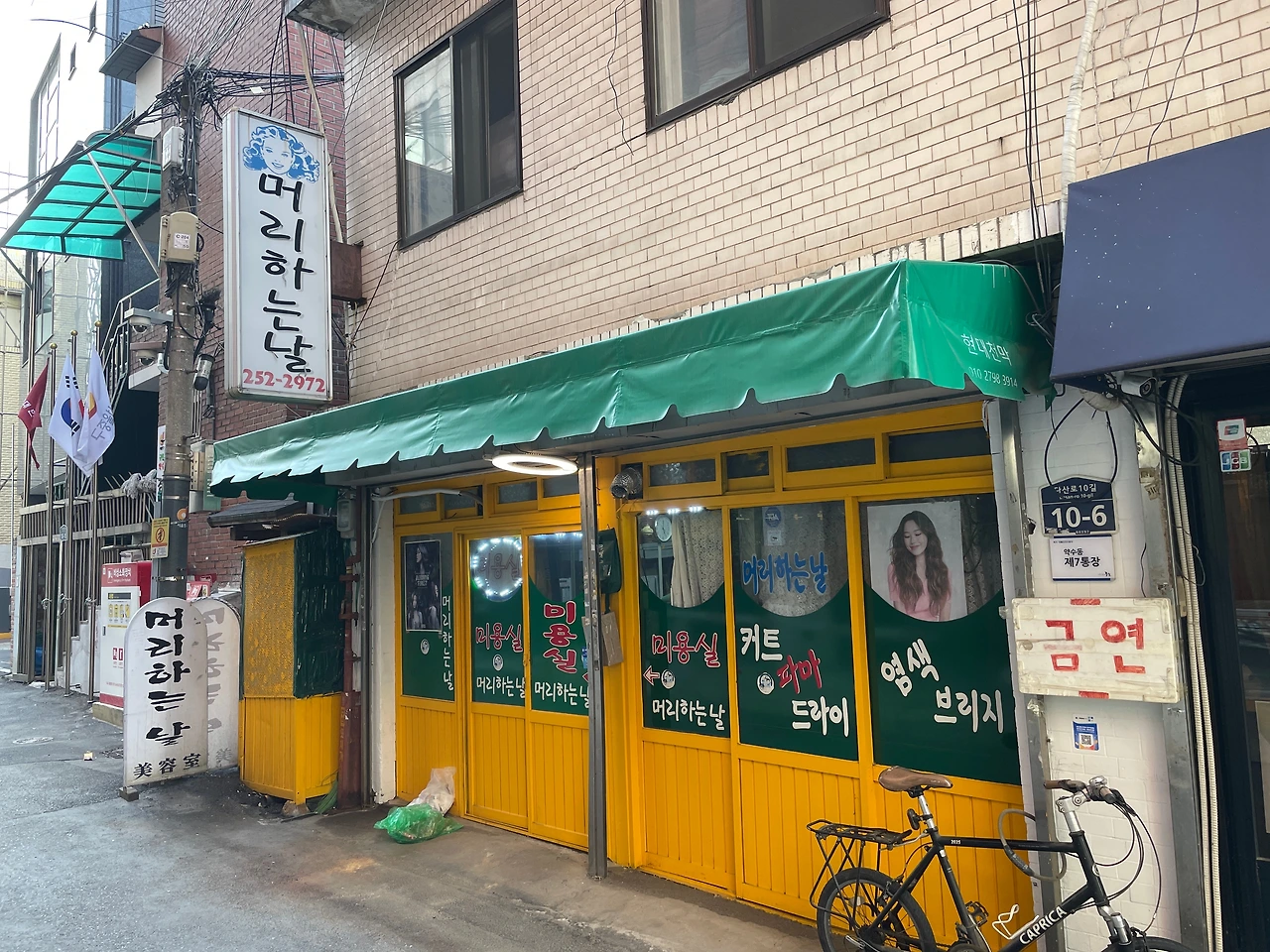 시장 안 가게들이 정감있다. 미용실의 노란 색감이 따뜻하다.