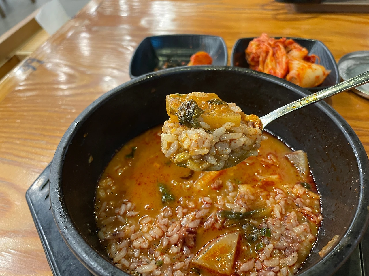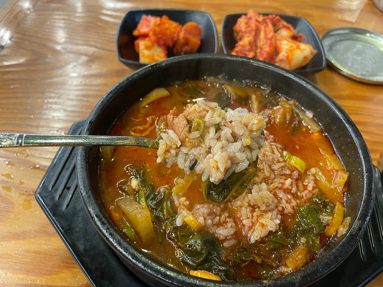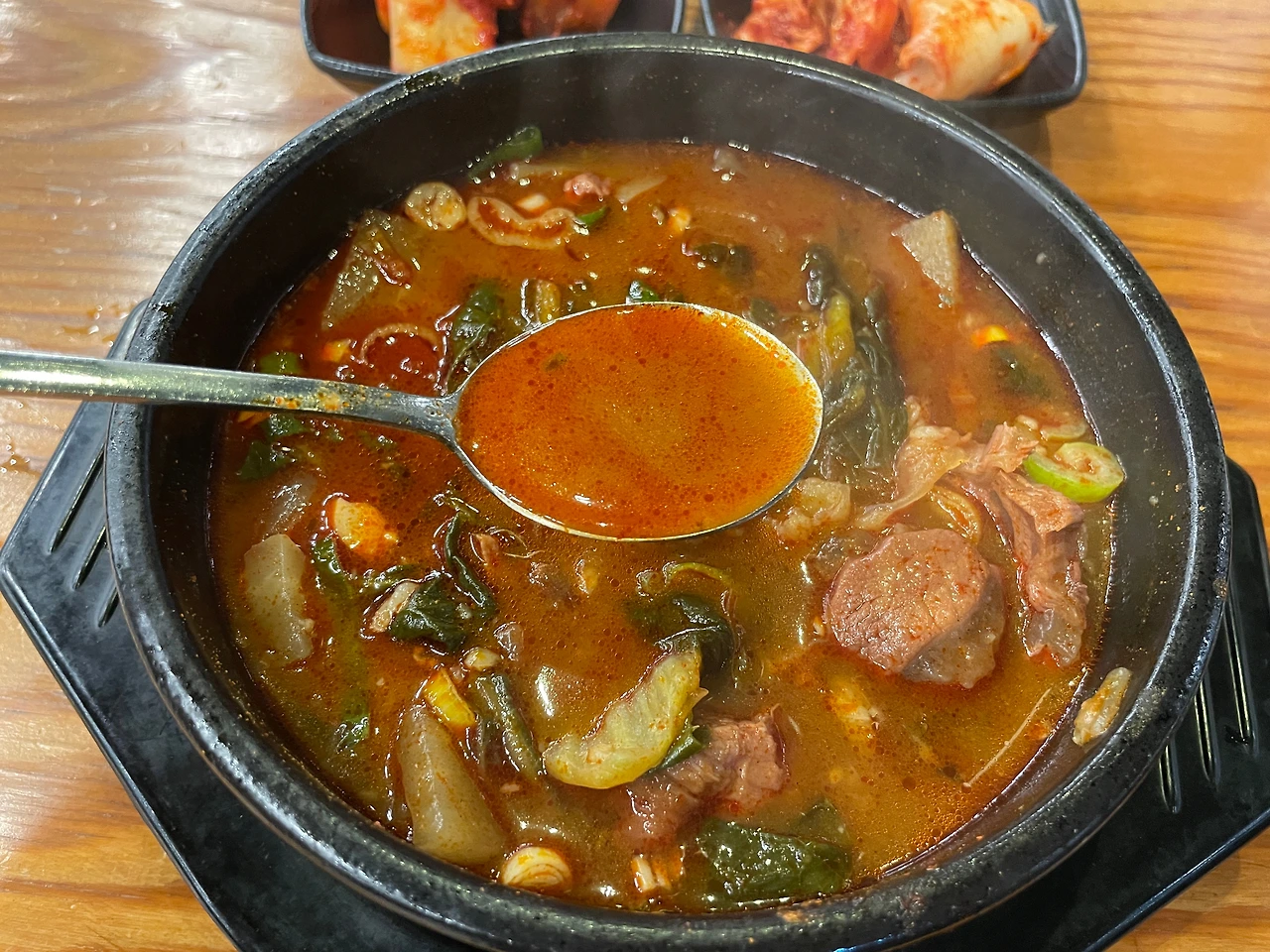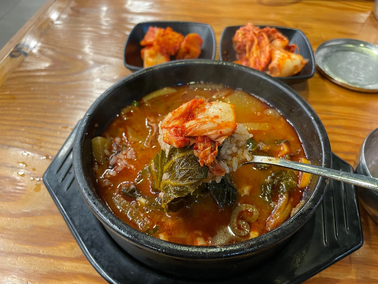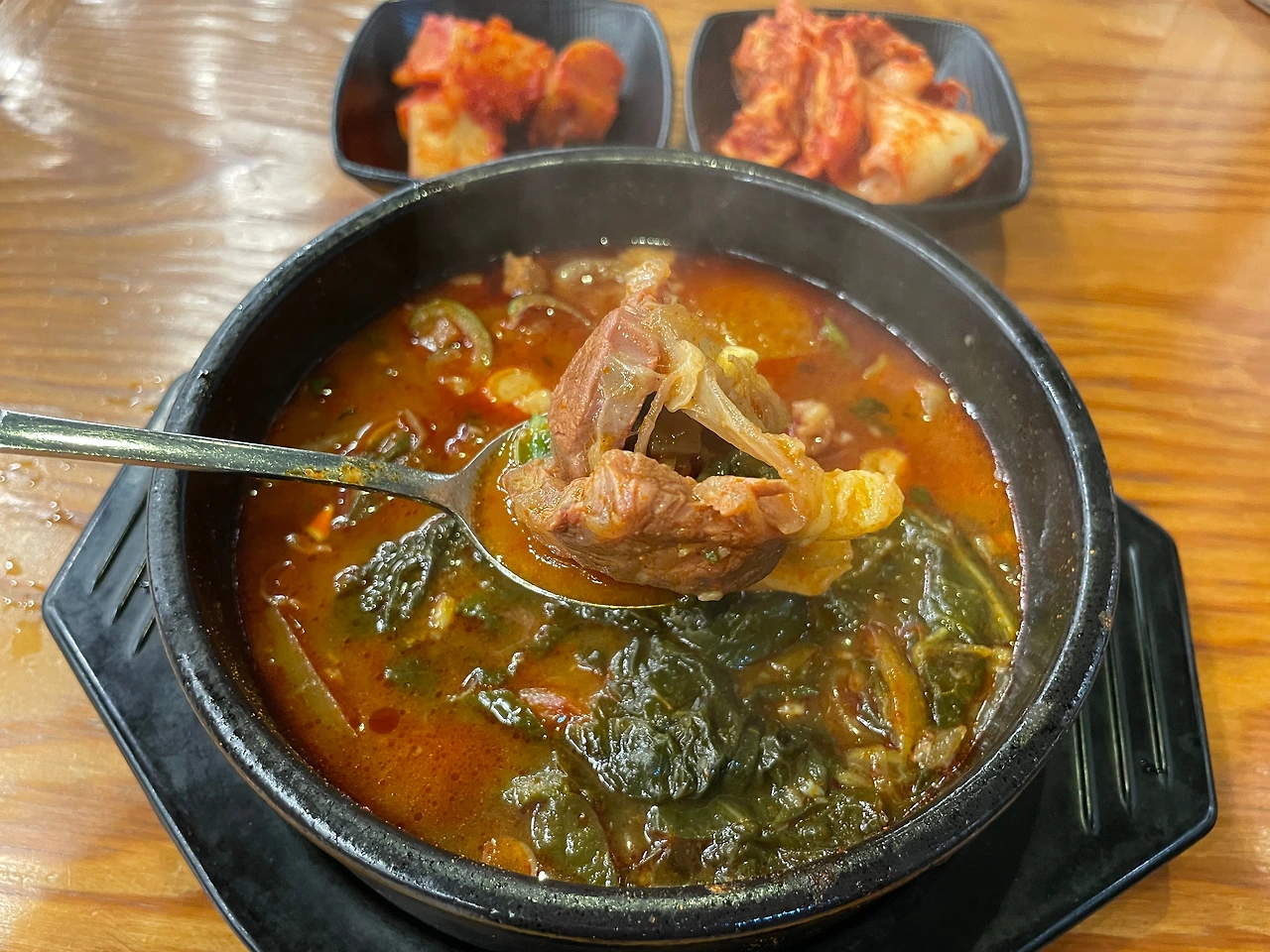 전형적인 장터국밥 맛이다. 거기에 매운맛을 강화했다. 맵고 짜고 나트륨 많은 자극적인 맛. 국물은 깊고 진하다. 굳이 비슷한 업계에서 비교하자면, 고기의 양이나 질, 국물 맛은 3일한우국밥 쪽이 조금 더 좋다. 게다가 접근성면에서 아무래도 의정부는 국밥 먹으러 오기엔 좀 멀다.