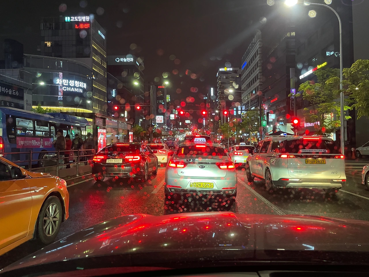 비가 내린다. 차창을 때리는 빗소리가 낭만적이다. 음악 들으며 드라이브하기 좋다. 이 시간에도 거리엔 사람들이 많다.