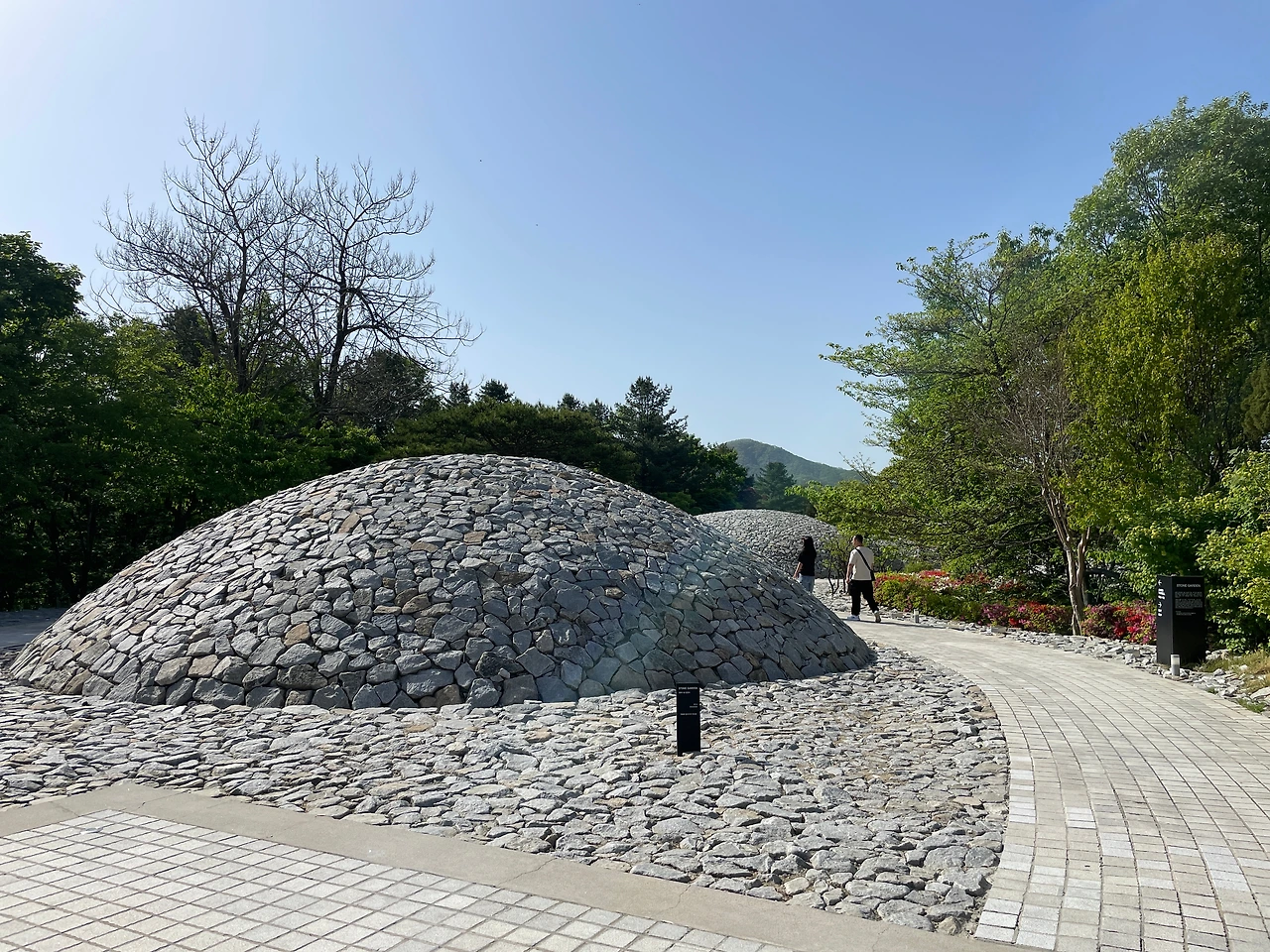 신라 고분을 형상화 한 9개의 돌무덤이 있다. 각각에 이름이 붙어있는데, 대한민국의 8도와 제주도로 이루어져 있다. 나는 이런 현대미술에 조예가 없는 아예 문외한으로, 적당한 감상평을 찾지 못한다.