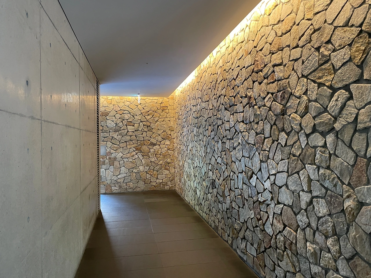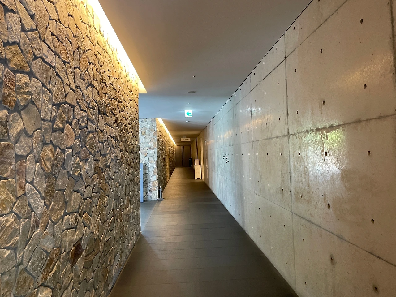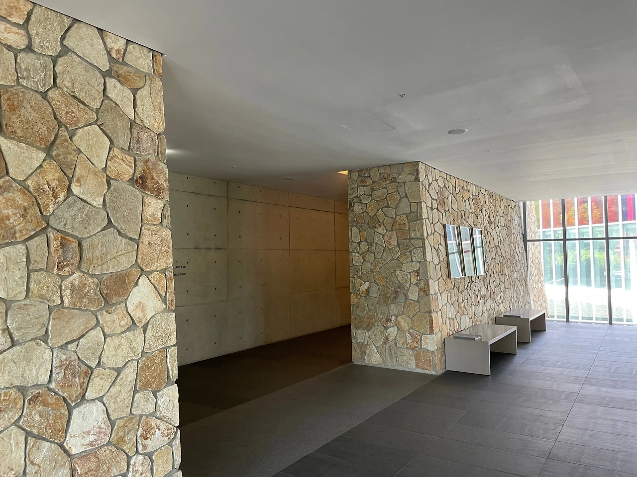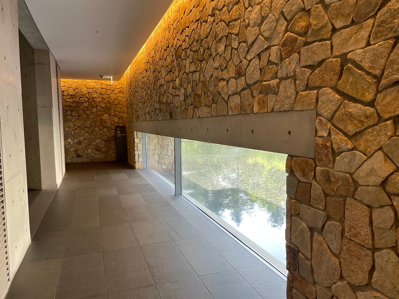 본관 안쪽벽은 이런 돌 패턴 혹은 노출 콘크리트의 조합이다.