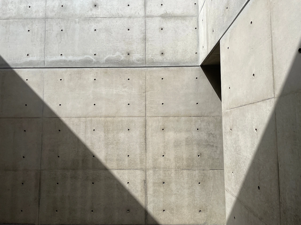 가까이에서 보면 거푸집 고정틀 자국까지 보인다. 노출 콘크리트의 원조를 굳이 따지자면 '르 코르뷔지에'라고 할 수 있을까. 하지만 대중화에 기여한 건 역시 안도 다다오라고 할 수밖에. 그건 부정할 수 없겠지.