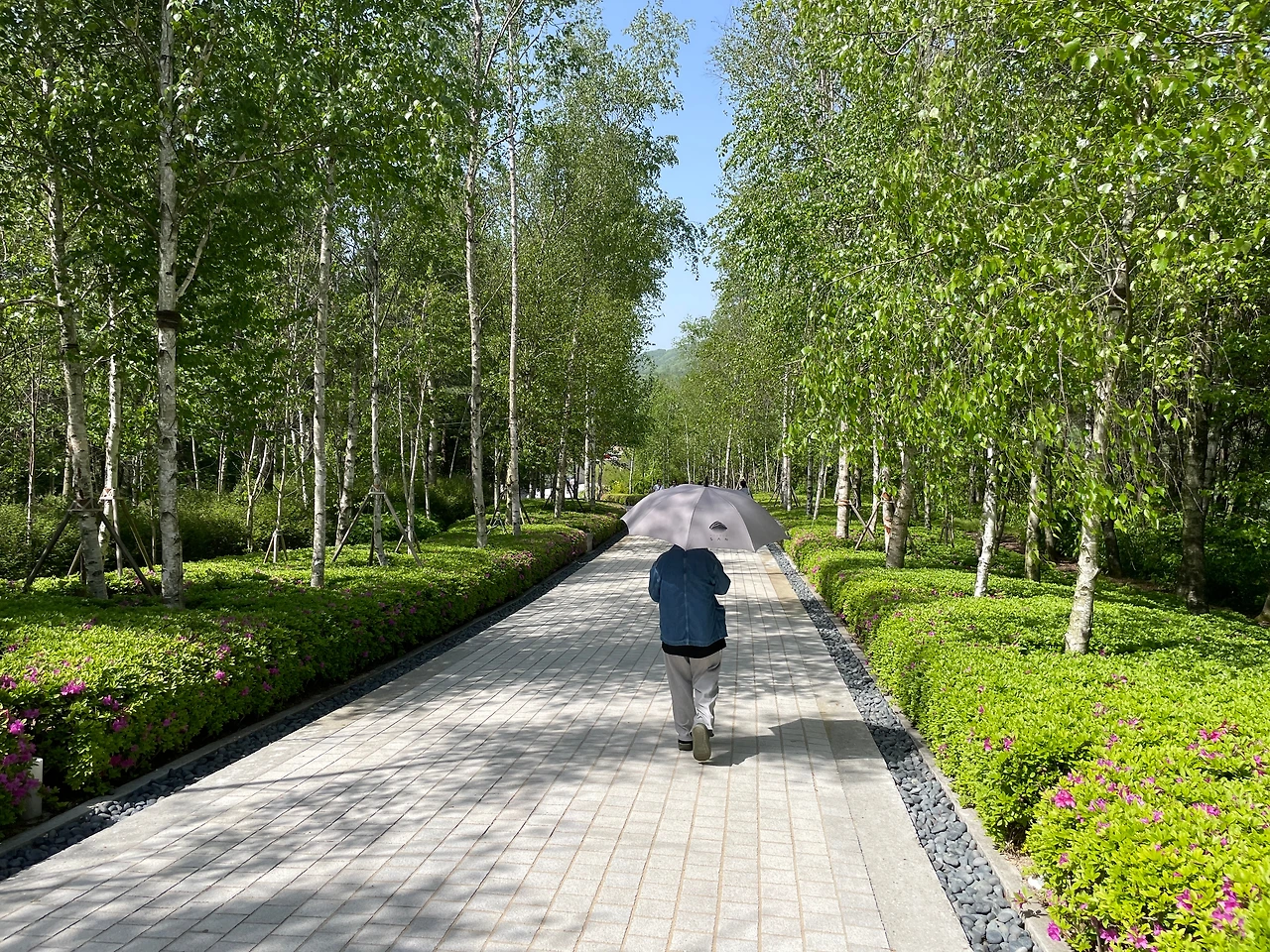 산책로가 뜨거웠는데, 우산(양산)을 비치해 관람객들이 자유롭게 사용할 수 있도록 배려했다.