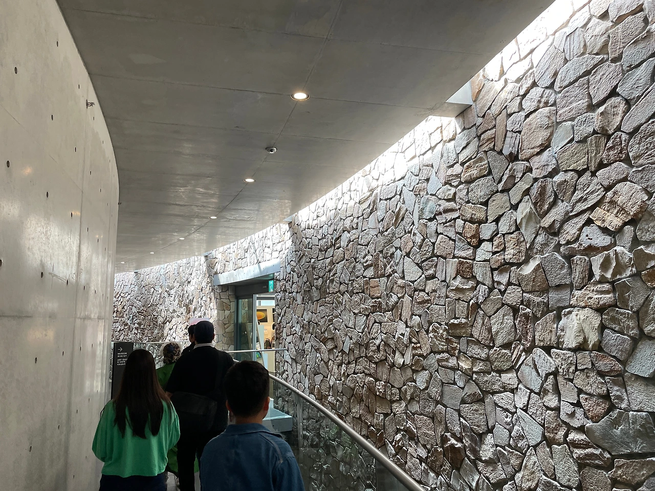 입구로 들어선다. 박물관 전체에서 자주 만나게 될, 돌을 쌓아 올린 저 패턴.